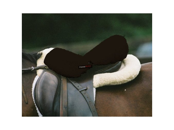 Potah na posedlí z pravého merina. Tvarem přesně odpovídá posedlí anglického sedla, proto se dokáže skvěle přizpůsobit. Fixován na bocích gumkama na suchý zip a jednou gumkou podélnou. Výška vlny 30 mm.