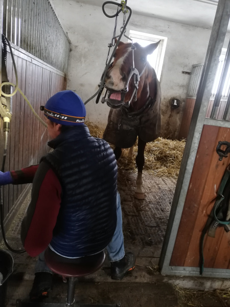 Důležitá je spolupráce pacienta a doktora. A pacienti jsou koně, kteří mají rádi řád a pravidelnost. Proto je dobré mít koně při úpravě zubů v boxu, kde je zvyklý být a ošetření snese lépe. Pokud nemáte box, postačí i přístřešek nebo nějaké místo, kde bude kůň mezi stěnami a nacouvá maximálně do nich, když nebude plně s úpravou chrupu souhlasit. Zcela zásadní je ale elektřina, bez které zubařská bruska nefunguje...