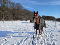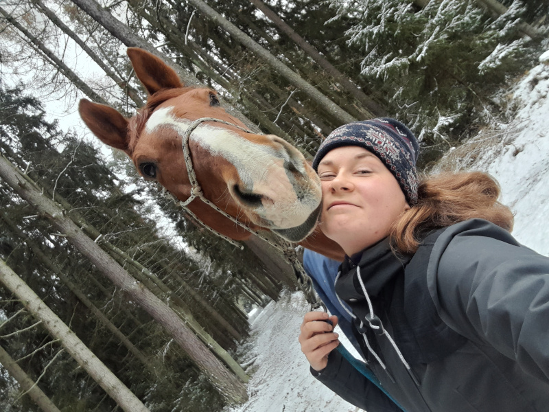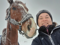 Co se týče koní, doporučení na zimu již padlo několik. Z tipů pro jezdce bych zmínila hlavně zimní jezdecké kabáty a bundy, teplé zimní boty nebo beránek na posedlí. Tam si ale nejsem jistá přilnavostí zadnice v případě koňského divočení. Já dávám přednost vrstvení termoprádla a rajtek a holému sedlu. Zima také svádí k výměně jezdecké helmy za teplého kulicha, ale ani měkký sníh nás neochrání od zranění hlavy. Tenká čepička nebo čelenka přes uši pod helmou mi připadají jako bezpečnější řešení. Také je čas vyměnit tenké letní rukavice za zimní, pokud s nimi jezdíte. Osvědčilo se mi i používání tlustých vlněných rukavic, které rozhodně nebyly vyrobeny na ježdění, ale otěže mi s nimi nekloužou.