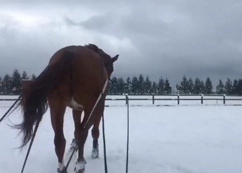 Jinak je pro mě zima spíše časem hraní ze země, procházek a trávení času ve stáji v pomalejším rytmu. Co jste nestihli jezdecky doladit v sezóně, na to je teď čas ze země. Pokud máte k dispozici halu, tak je to úplně ideální. Lehké hraní ze země kůň určitě uvítá, a vy si alespoň ověříte, zda jste na stejné vlně. Nehledě na to, že se vám koník tolik nezpotí a nemusíte čekat celou věčnost, než ho budete moci pustit zpět do výběhu.