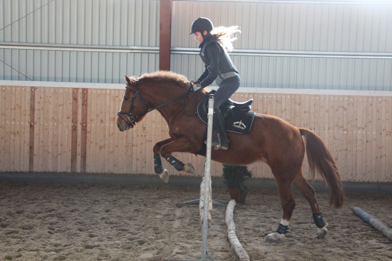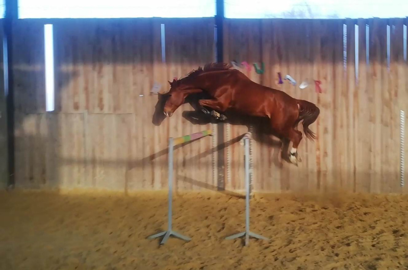 Další možností, jak koně zaměstnat i bez jezdce v sedle, je skákání ve volnosti. Mladí koně se naučí, co a jak dělat sami se sebou, aniž by u toho mrzačili jezdce. Zkušení koně se proběhnou, zacvičí si, a připomenou si správný odskok. Pokud kůň poctivě pracuje i v zimě, a není "z kondice" můžete se proskákat časem i k úctyhodným výškám. Můj kůň vždy tento tip práce zbožňoval, a odvážně šel do všeho, co před ním stálo. S radostí skákal dokola malý křížek, ale i skoky tak obludné, že bych si na ně rozhodně na jeho hřbetě netroufla, a to bych mu svěřila vlastní život... A skákání ve volnosti nemusí být jen o překonání jednoho velkého skoku. Koním lze stavět celé gymnastické řady, ať už in-outy nebo několik skoků za sebou, které se překonávají i s přesně napočítanými kavaletami mezi sebou nebo zcela bez nich. Takto lze natrénovat různé situace, jejichž absolvování se může později hodit. Dbejte však na to, že správná vzdálenost mezi břevny i skoky je zásadní. Pokud vám vyloženě nejde o to, aby si kůň vyzkoušel překonání klacků, které jsou schválně zcela náhodně, nespoléhejte se na to, že to "nějak vyjde". Existuje odborná literatura, strýček Google, AI, ale také trenéři, kteří vám určitě poradí a pomůžou...