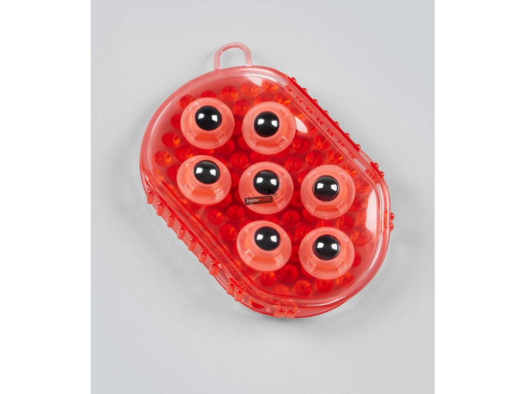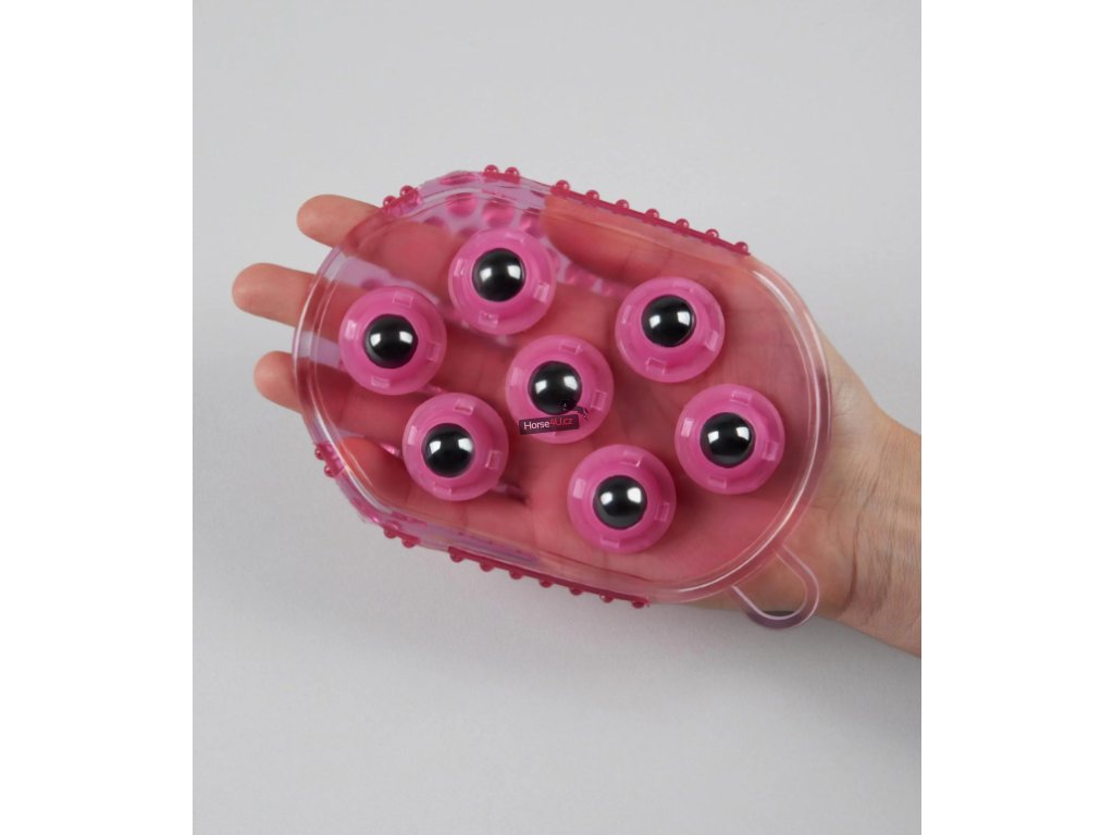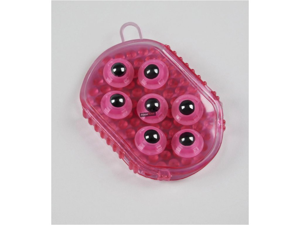 Dopřejte svému koni luxusní relaxaci s magnetickou masážní rukavicí. Její vysoce kvalitní polymerové a ocelové kuličky poskytují masáž celého těla, která zvyšuje krevní oběh a snižuje stres. Lehký a flexibilní design se přizpůsobí tělu vašeho koně a zajistí vám masáž bez námahy. Vylepšete wellness rutinu svého koně pomocí této sofistikované a exkluzivní masážní rukavice.