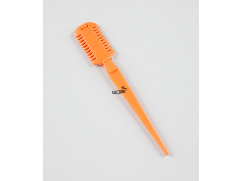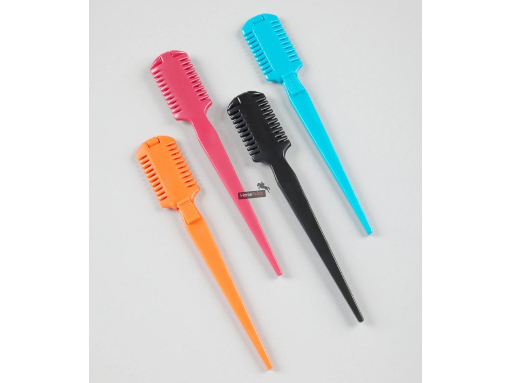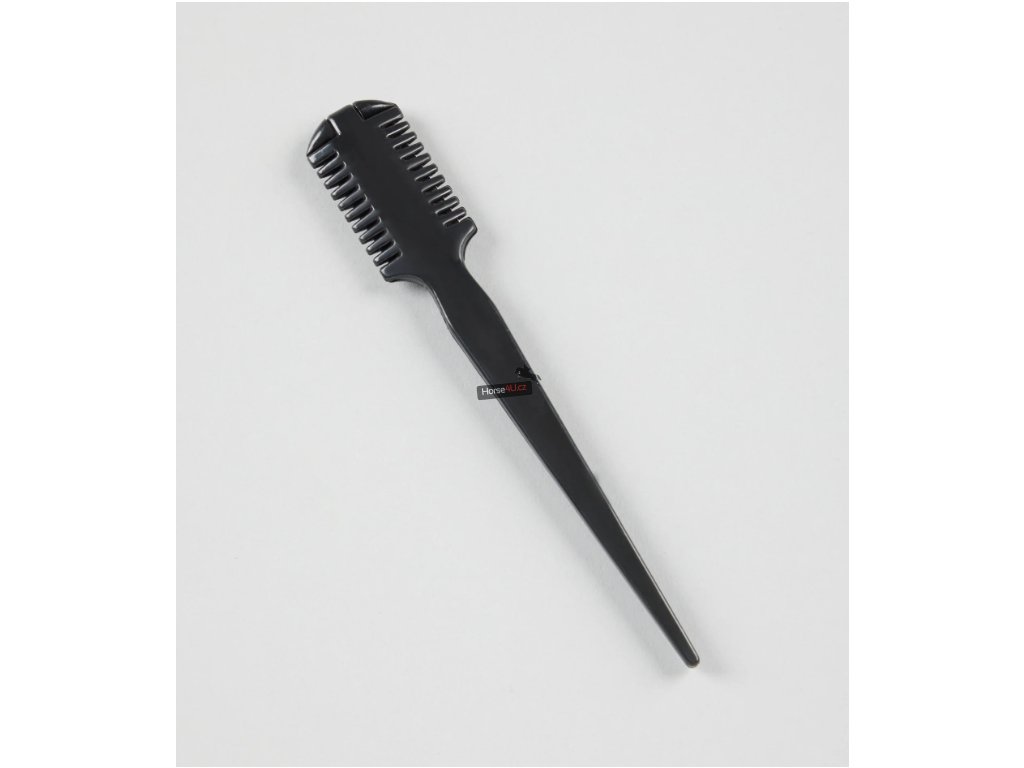 Prořezávací hřeben s bezpečnostními zuby na obou stranách hlavy. Čepel lze vyjmout a vyměnit.