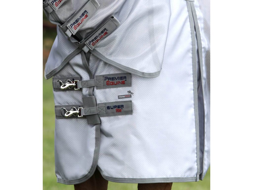 Super Lite Fly Rug je vyrobena z revolučního extra lehkého materiálu, vyvinutého pro ochranu proti slunci, přehřívání a obtěžujícímu hmyzu. Deka je ze 100% lehkého nylonu, který nabízí mimořádnou pevnost, odolnost a výjimečné pohodlí pro koně. V těch nejteplejších podmínkách poskytuje nejen ochranu před hmyzem, ale také odráží sluneční paprsky a pomáhá udržovat koně chladnějšího než běžné deky proti hmyzu.