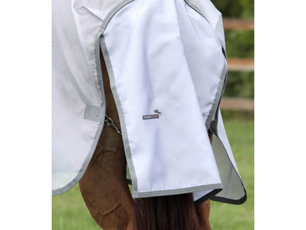 Součástí deky je prodloužený, extra velký ocasní kryt, který zajišťuje stálou ochranu a odolává zvedání větrem. Tato deka odráží 70 % UV záření, takže je ideální pro teplé počasí nebo pro koně, kteří mají potíže s udržením chladné teploty během léta.