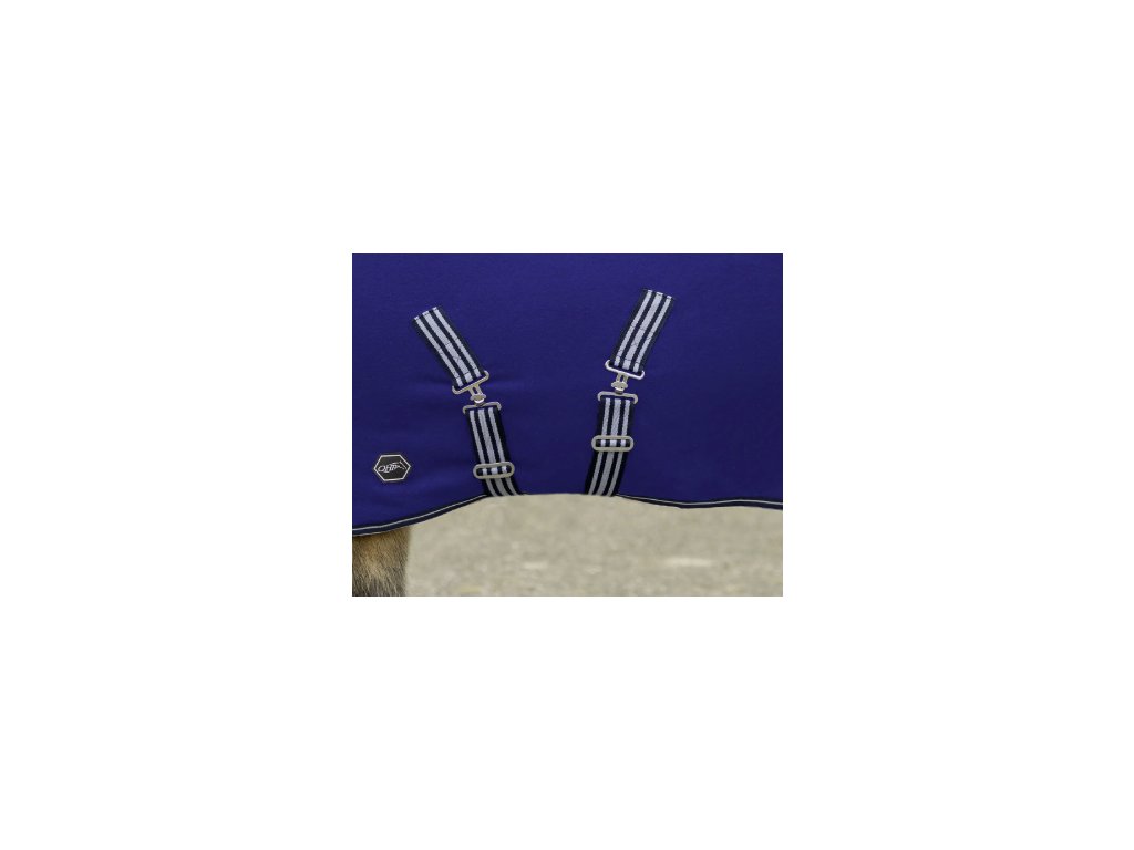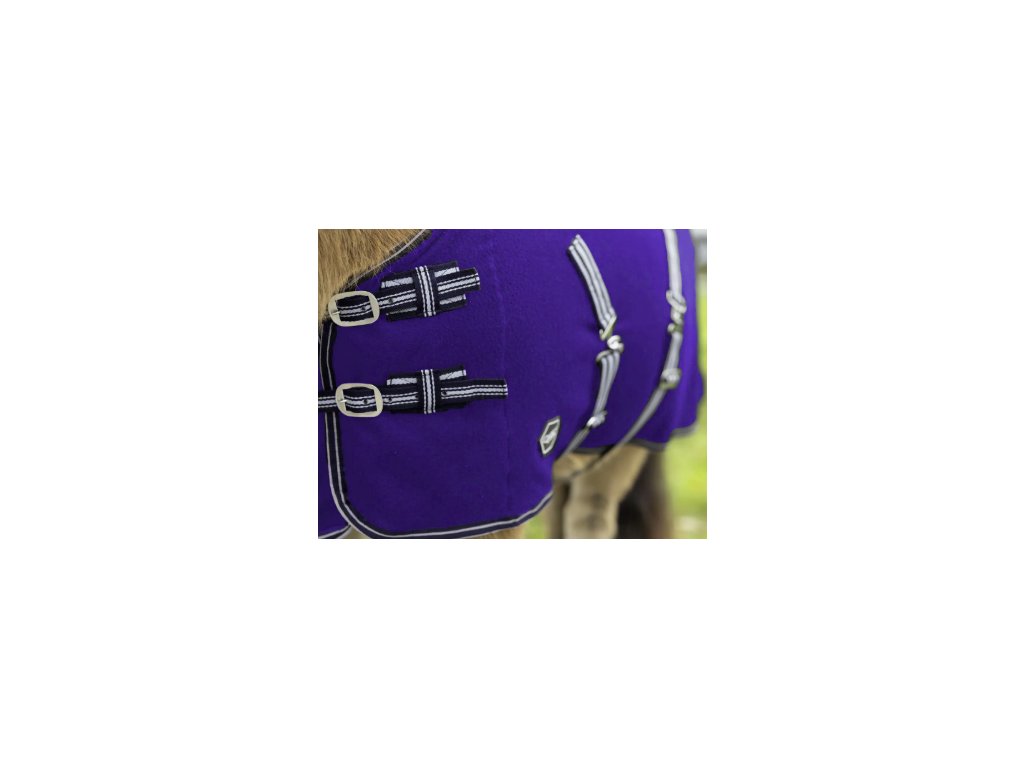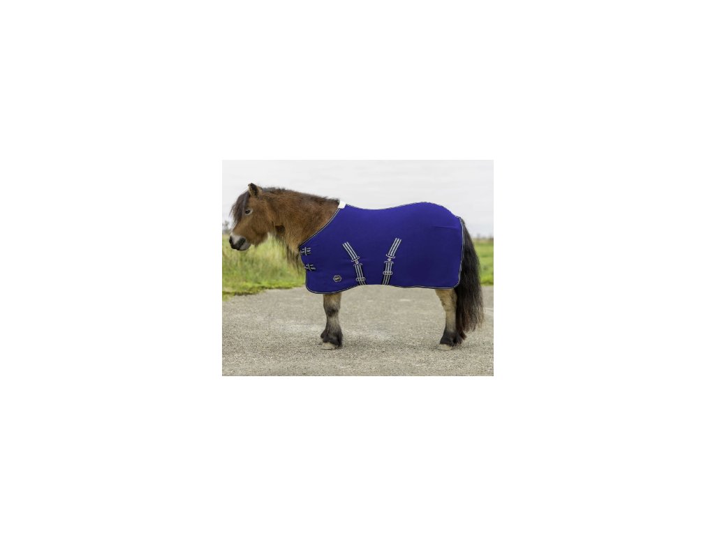 Fleece odpocovací deka pro falabelly. Má dvojité přední zapínání na přezky a křížové zapínání pod břichem, takže deka nikam nesjíždí.