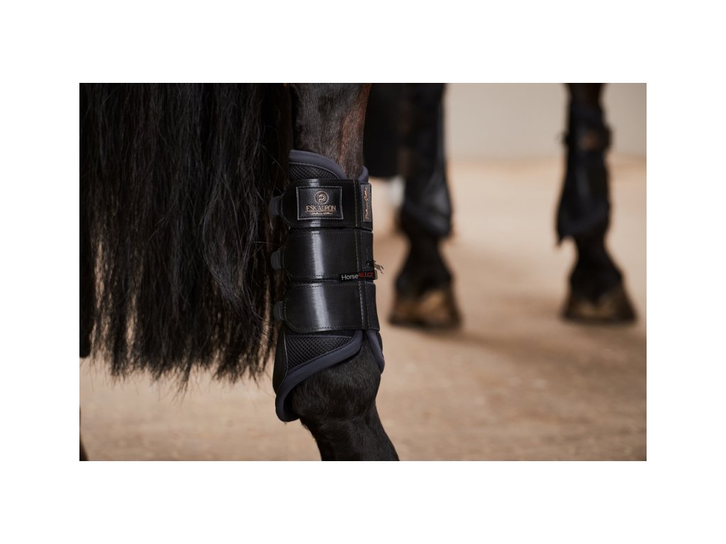 Elegantní chrániče Eskadron vyrobeny z vícevrstvé síťoviny se softshellovým lemováním. S optimálním rozložením tlaku a maximálním tlumením nárazů. Prodyšné. Snadná manipulace díky širokým lesklým zipům. Nápis Eskadron na suchém zipu a raženým emblém Platinum. Snadné na údržbu a omyvatelné. Cena je za pár.