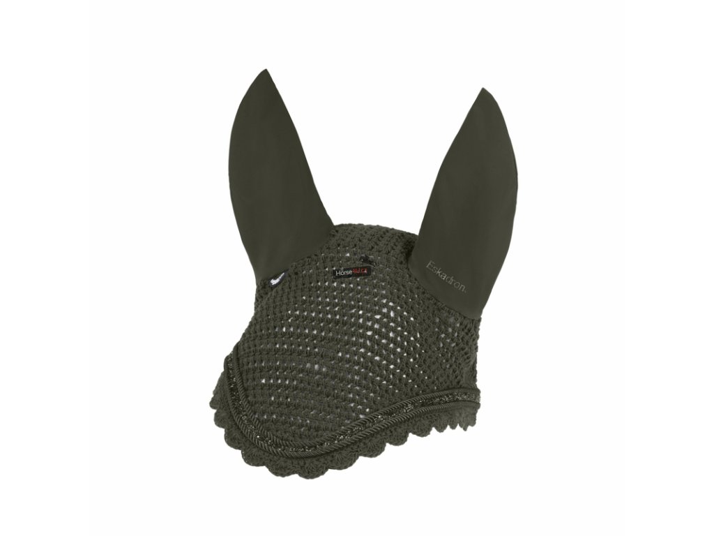 Vysoce kvalitní a trvanlivá háčkovaná čabraka s ušima ze softshell materiálu. Dvojitá paspulka s třpytivým páskem. Na levém uchu ozdobný zlatý nápis Eskadron.