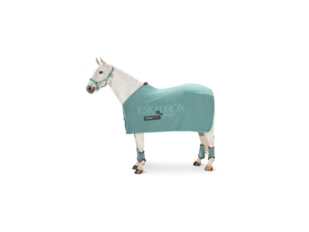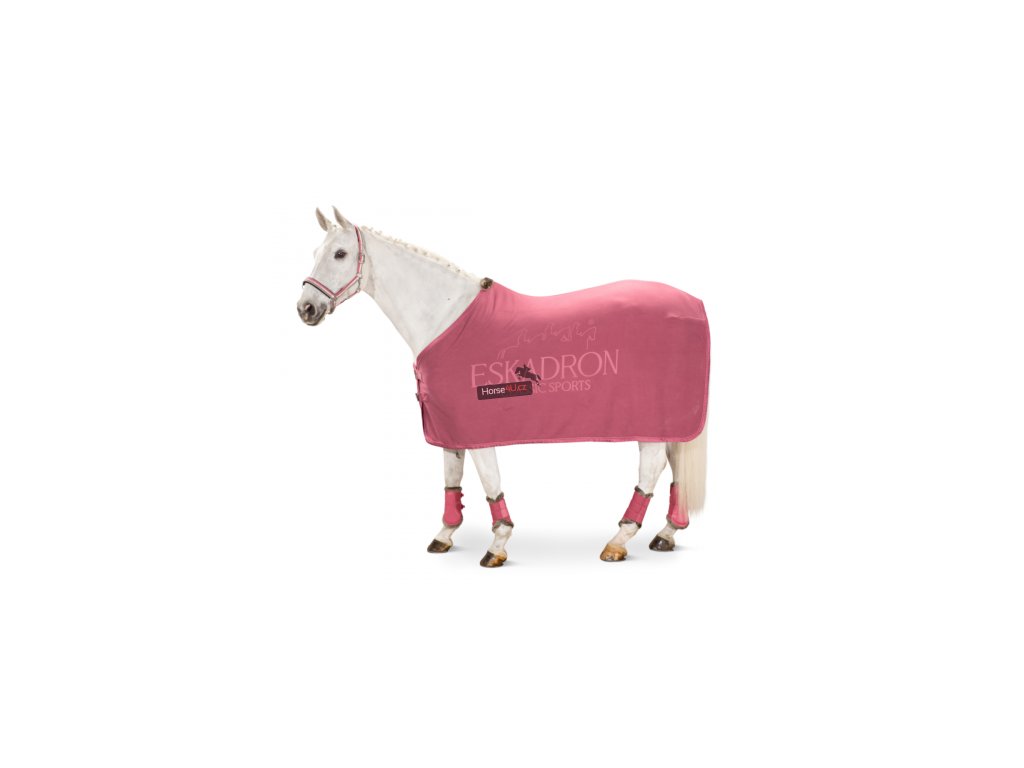 Jedinečná odpocovací deka vyrobena z kvalitního fleecu. Zapínání na přezku na plecích a ozdobná šňůrka pod ocas pro zabránění sjíždění deky. Bez křížového zapínání. Ideální po tréninku či soutěži, vhodná také pro přepravu. Logo kolekce Eskadron Classic Sports. S umělým beránkem na kohoutku.