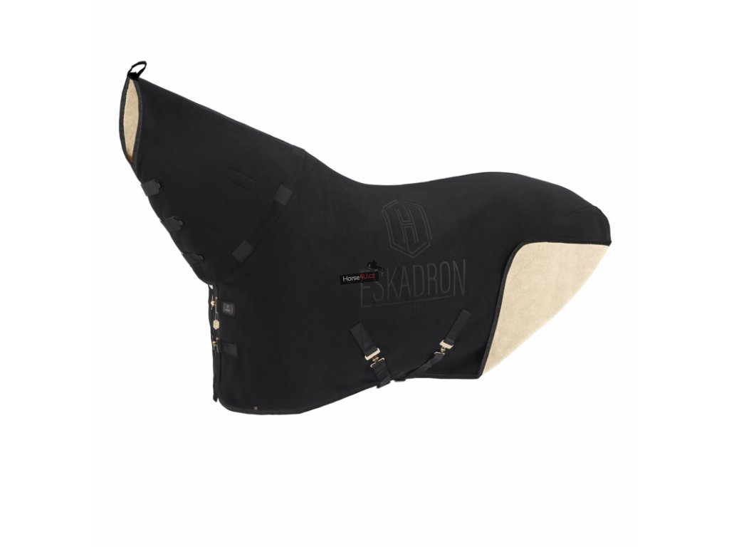Silná hřejivá fleecová deka s krční částí na rolování. Vnější povrch odolný proti žmolkování a uvnitř příjemný plyšový fleece pro vysokou akumulaci vzduchu a tepla. Výrazné logo kolekce Eskadron Heritage. Dvojitá prsní přezka pro fixaci, odnímatelné křížové zapínání a integrovaný ocasní popruh. Možnost připnout k ohlávce.