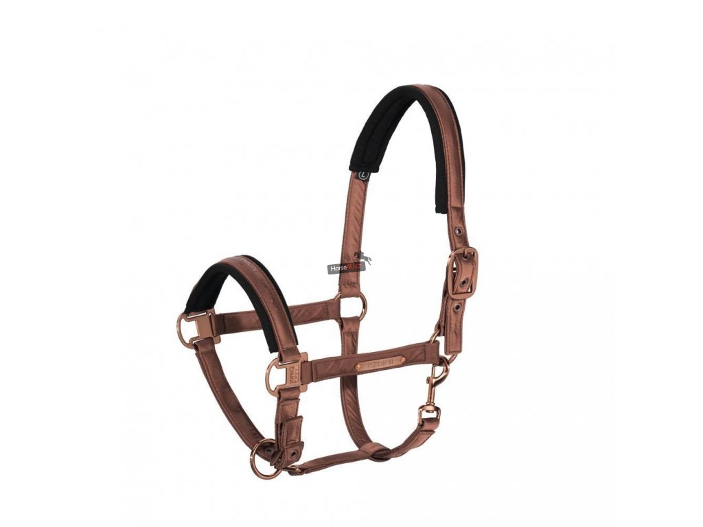 Ohlávka v barvě kolekce v celobarevném provedení. Nátylník a nánosník podloženy měkkým černým neoprenem pro větší komfort koně. Nastavitelná, na karabinku, se stříbrným kováním. Na nánosníku znak firmy a nápis Eskadron.