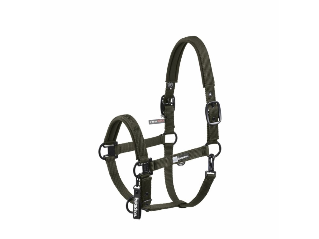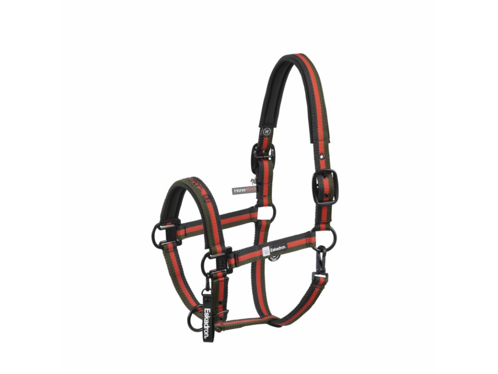 Kvalitní ohlávka ze softshellového matzeriálu odolná proti roztržení. Nátylník a nánosník podloženy měkkým neoprenem pro větší komfort koně. Nastavitelná, na karabinku, s kováním v černé barvě. Na lícnici nápis Eskadron a druhým nápis přes celý nánosník.