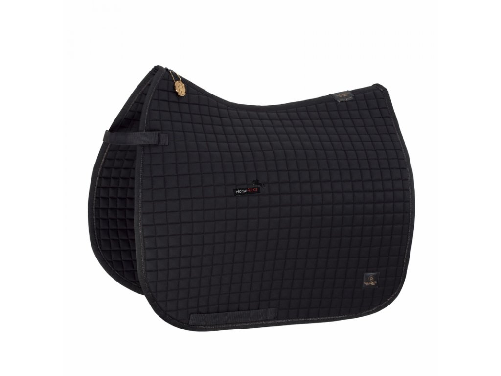 Jemné asymetrické čtvercové prošití dodává dečce originální vzhled, stejně jako kontrastní lem. Atraktivní podsedlová dečka v příznivém poměru kvality a ceny. Materiálem je 100% bavlna, stejně jako u ostatních deček od firmy Eskadron zaručuje dokonalý odvod potu.