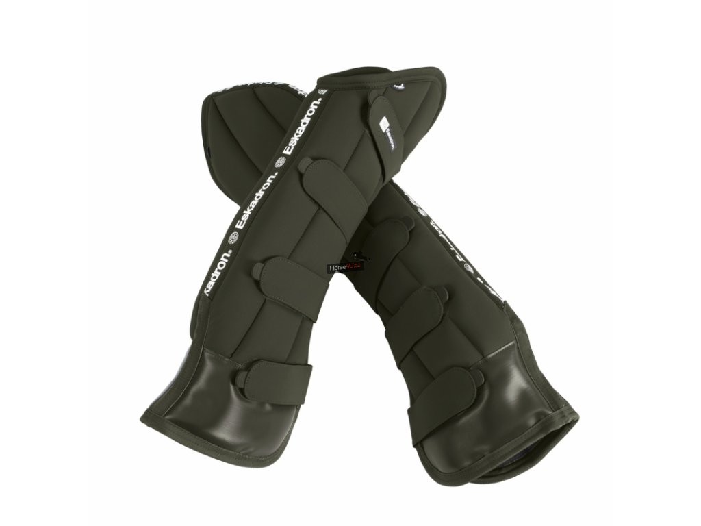 Transportní chrániče ze softshellového materiálu s fleecovou podšívkou. Chrániče poskytují optimální rozložení tlaku. Zapínání na 4 popruhy. Robustní zesílení v oblasti kopyta zepředu i vzadu. Dokonalý komfort a ochrana nohou vašeho koně. Sada 4 ks.