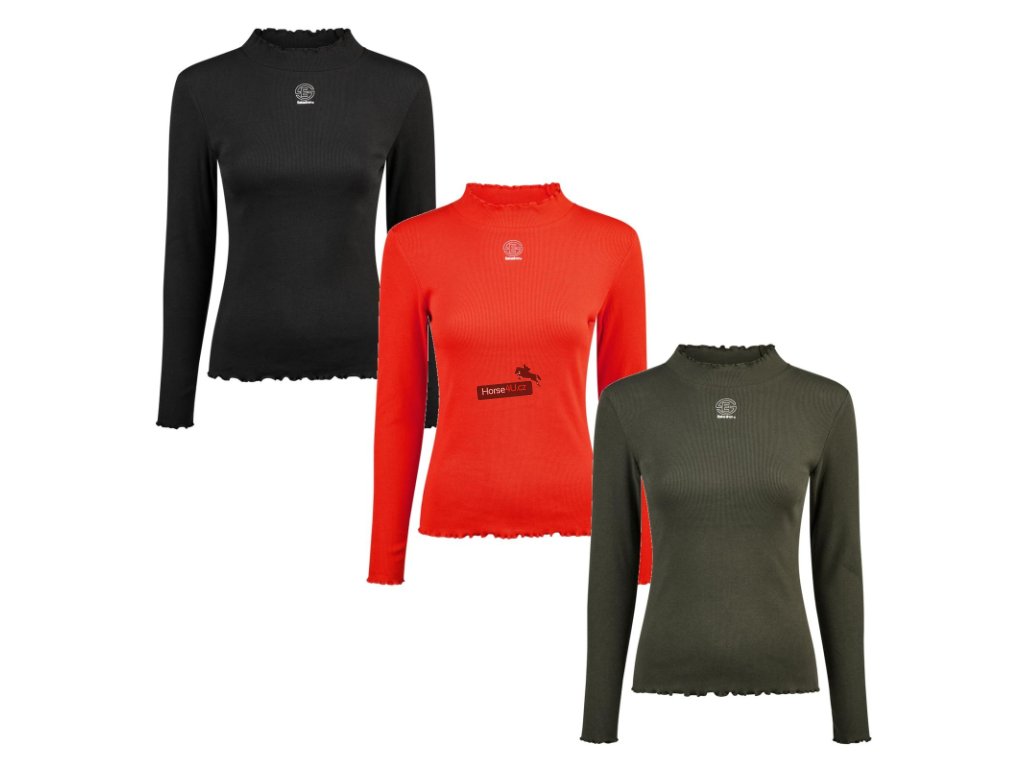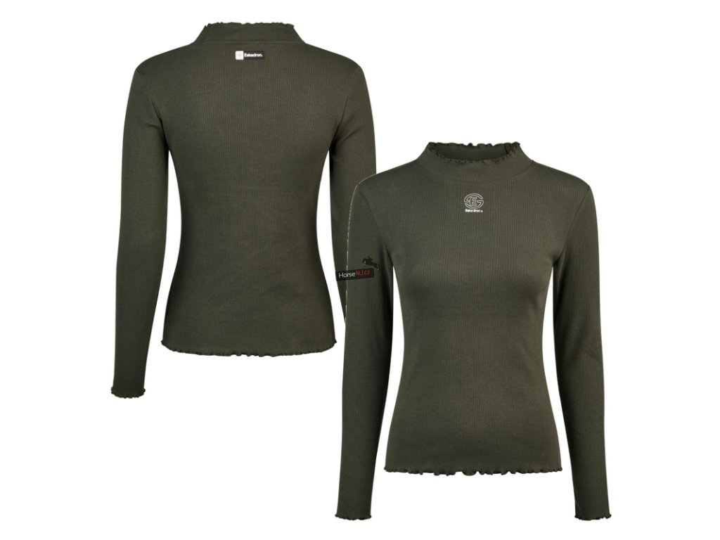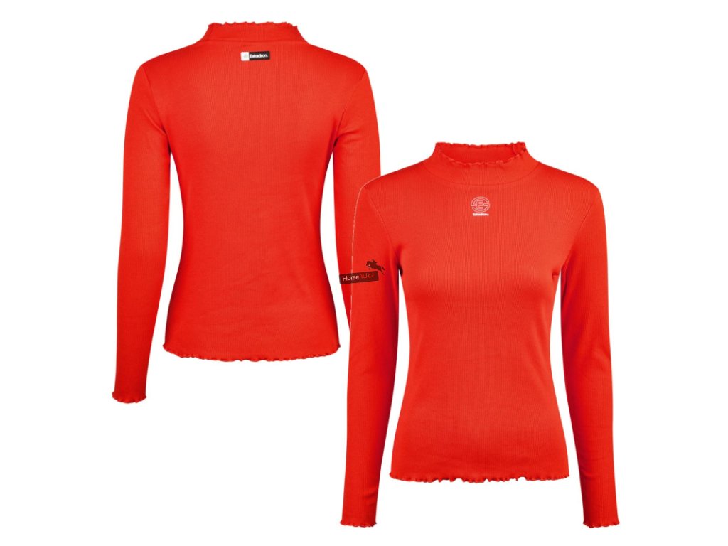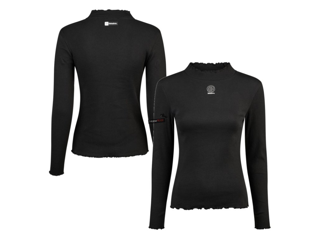 Tričko s dlouhým rukávem a stojáčkem z bavlněného žebrovaného žerzeje. Volánky na límci, rukávech a lemu. Přiléhavý střih. Potisk Eskadron na přední straně a znak Eskadron na zadní straně.