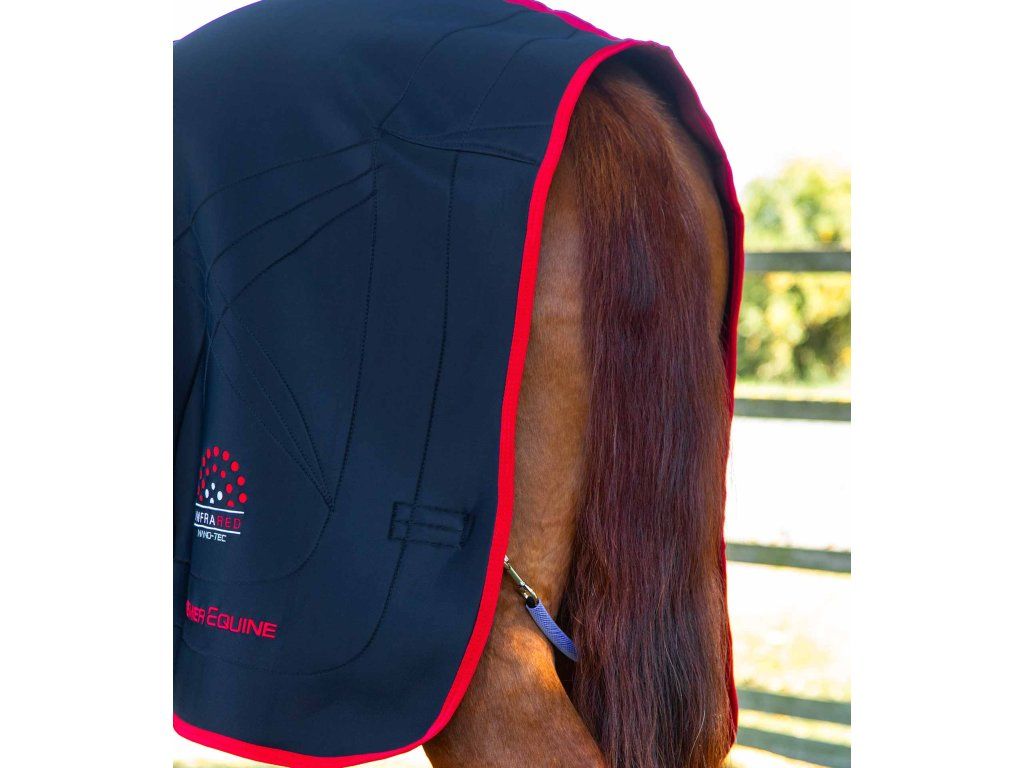 Infračervená terapeutická deka pro koně s krčním dílem a křížovým zapínáním pod břichem. Vyvinuta tak, aby pomohla znovu nabít energii a maximalizovat potenciál sportovního výkonu vašeho koně. Může také pomoci snížit hromadění kyseliny mléčné způsobené únavou, což snižuje dobu zotavení. Kromě infračervené technologie je podšívka savá, prodyšná a kůň s ní neprochladne.