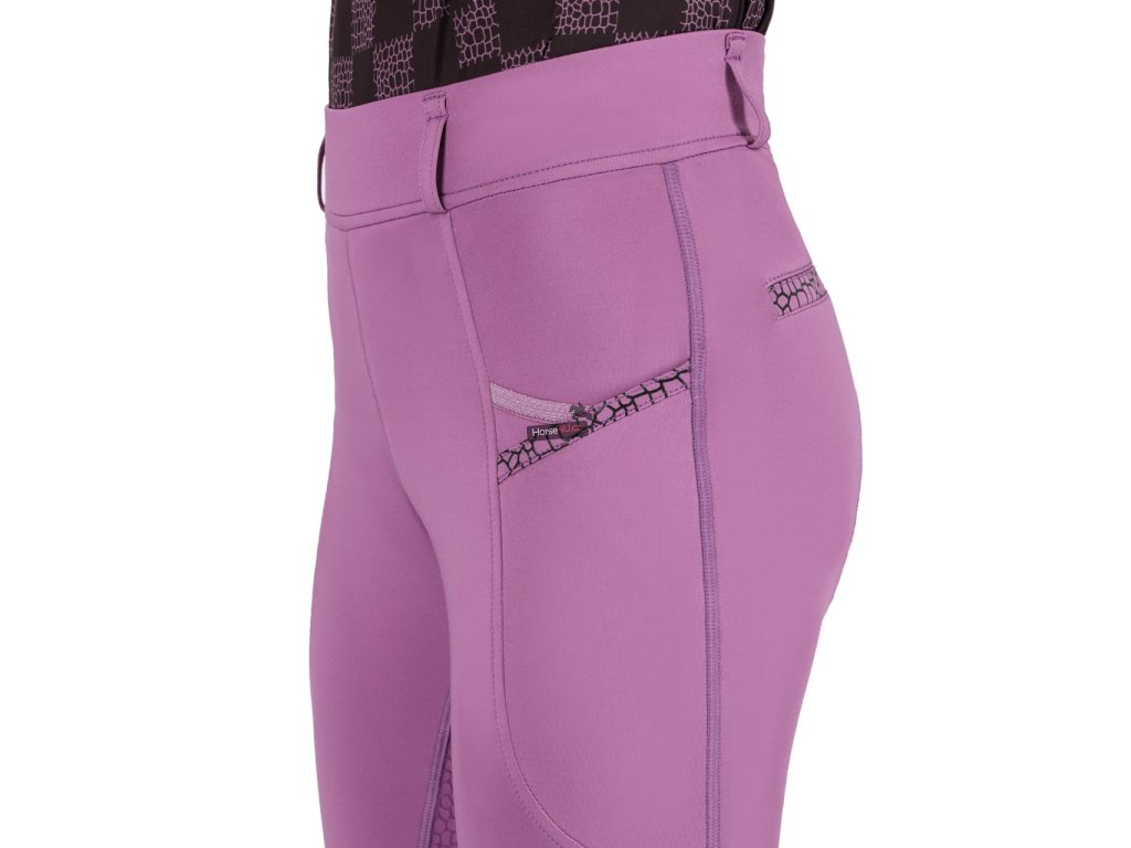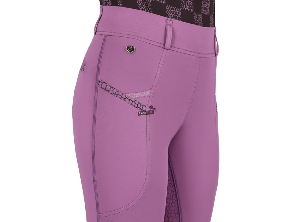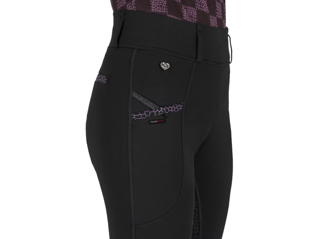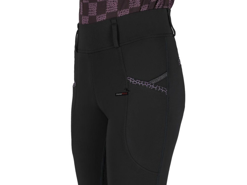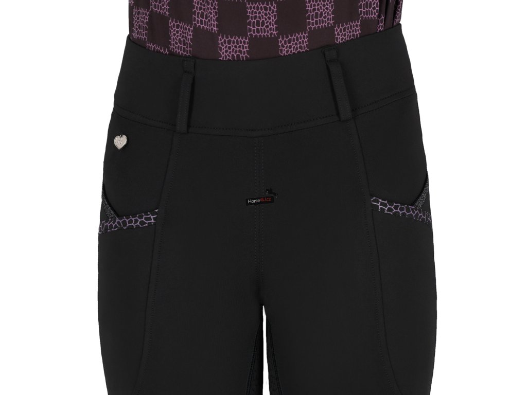 Jezdecké leginy Lize ze zimní kolekce jsou prodyšné a tvarově stálé, vyrobené ze 4-cestné strečové tkaniny pro optimální volnost pohybu. Díky vysokému pasu a poutkům na opasek nabízejí tyto jezdecké legíny pohodlné nošení. Boční kapsy a ozdobné zadní kapsy dodávají outfitu pěkný vzhled a zapínání na špendlík ve tvaru srdce dotváří celkový styl.