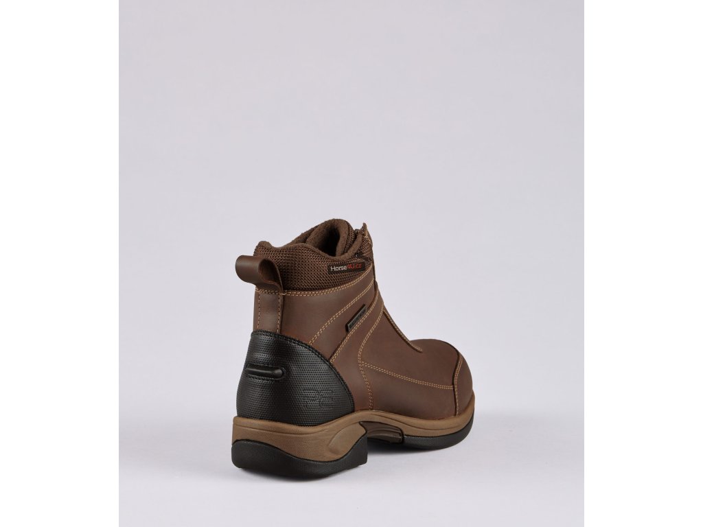 Voděodolné boty Borelli jsou dokonalým spojením inovace a stylu, vyrobené z vysoce kvalitní kůže DIN, známé pro svou sílu a odolnost. Díky technologii Hydroguard nabízí tyto boty výjimečnou nepromokavost a udrží vaše nohy v suchu a pohodlí i v těch nejmokrějších podmínkách. Pokročilá konstrukce zajišťuje prodyšnost a zároveň zabraňuje vnikání vody a poskytuje spolehlivou ochranu po celý den. Sytá hnědá barva umocňuje nadčasový, všestranný design a nabízí sofistikovaný a zemitý odstín. Sytě hnědá kůže nejen skvěle vypadá, ale také dodává odolnost, díky čemuž je praktickou volbou pro venkovní nošení při zachování elegantního, leštěného vzhledu. Přední zip nabízí snadný přístup, který umožňuje boty bez námahy obouvat a zouvat, zatímco elastické boční panely poskytují bezpečné a flexibilní uchycení. Robustní hybridní pryžová podrážka poskytuje vynikající přilnavost a zajišťuje stabilitu v různých terénech, takže je ideální pro jízdu na koni, outdoorová dobrodružství i každodenní nošení. Jeho elegantní, moderní silueta a jednoduchý natahovací design přináší čistou estetiku, díky čemuž je všestranným doplňkem každého šatníku.