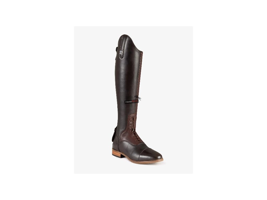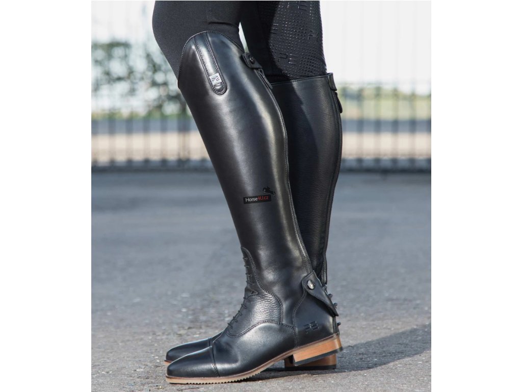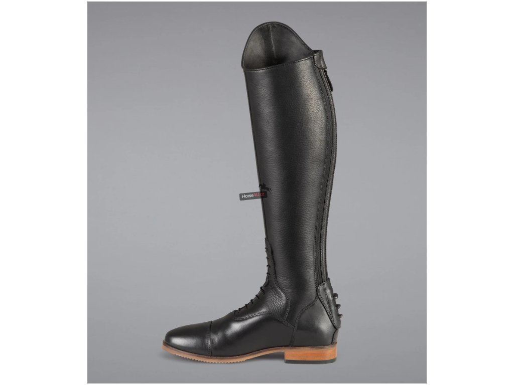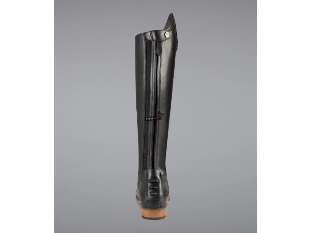 Německá anilinová kůže je integrována do vnitřní strany lýtka; napomáhá přilnavosti v sedle a měkké komunikaci se stranami koně. Díky svobodě pohybu, kterou tyto dlouhé jezdecké boty poskytují, jsou ideální pro použití při skákání, drezuře a všestrannosti.