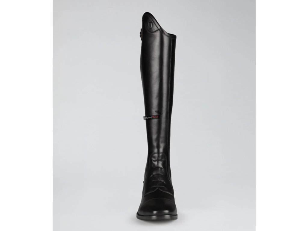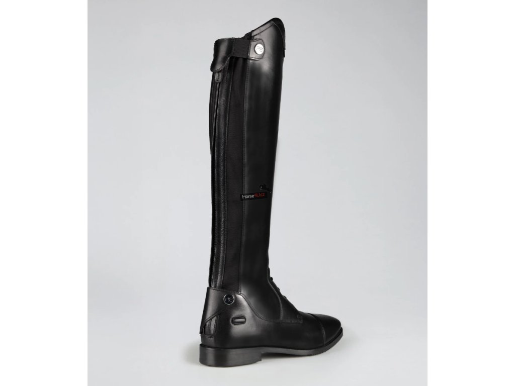 Měkká, ale odolná kůže je vyrobená tak, aby kopírovala přirozený tvar nohy jezdce, nabízí trvalou oporu a padne jako ulitá. Zadní zip s elastickým strečovým panelem zajišťuje pohodlný pocit, zvyšuje pohodlí a pohyb a zároveň si zachovává elegantní profil. Elegantní vrstvený design paty dodává celkové siluetě rafinovaný nádech.
