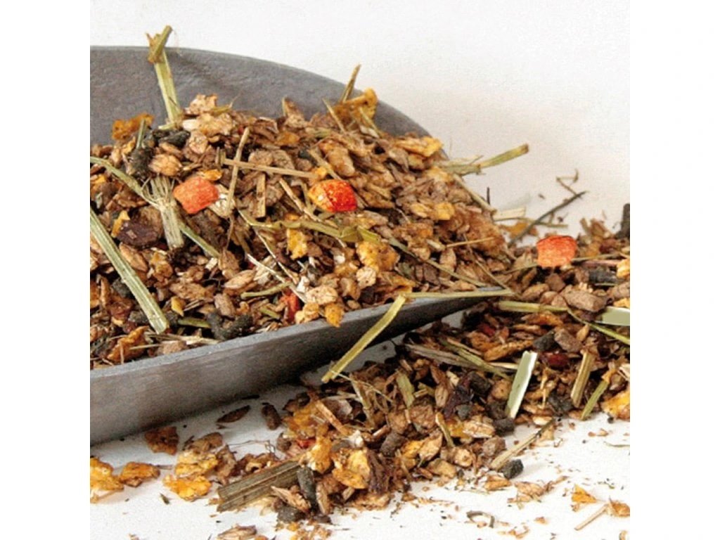 Kukuřičné vločky, ječné vločky, vojtěška, karobová moučka, 6 % melasa, ječmen, slunečnicová extrahovaná mouka, extrudovaná kukuřice, 2,1 % lněný olej, uhličitan vápenatý, pšeničné otruby, 1,5 % inaktivované pivovarské kvasnice, fosforečnan vápenatý, chlorid sodný, slunečnicový olej, kukuřičné klíčky, listy kopřivy, oxid hořečnatý, červená řepa, dextróza, 0,5 % bylin (listy proskurníku, jehličí smrku, kořen proskurníku, zelený oves, petržel, semena pískavice, skořápky šípku, pelyněk, kořen libečku, kurkuma, kořen kalamusu, zlatobýl, islandský mech, květy proskurníku, kořen pampelišky)