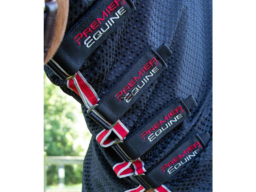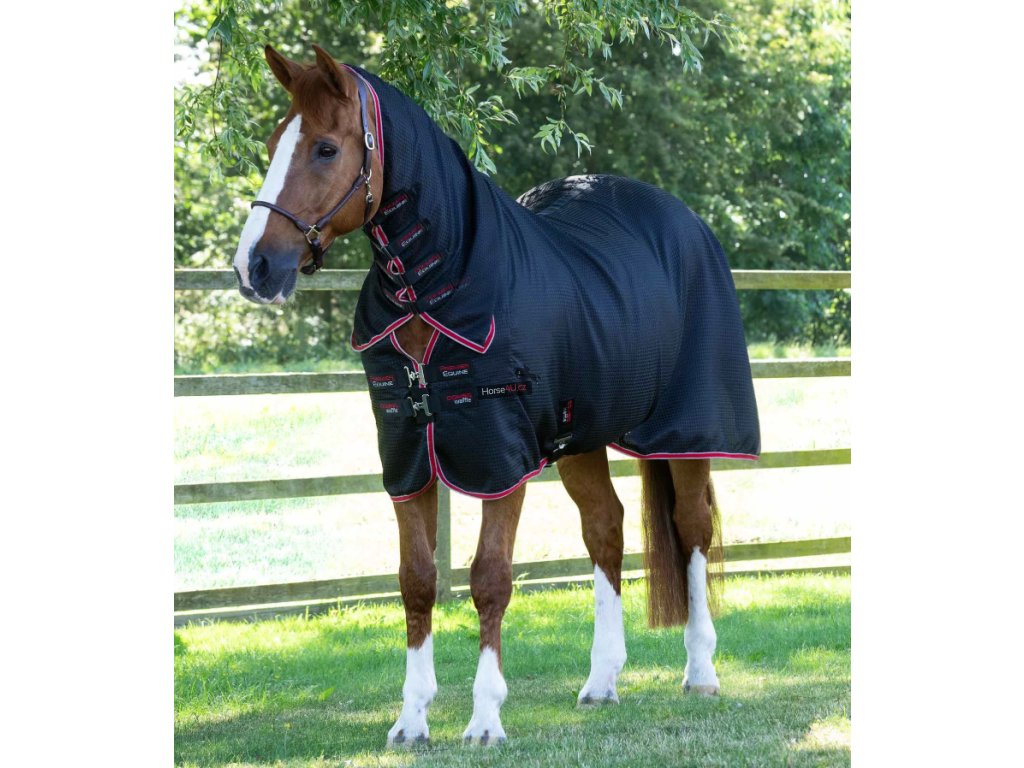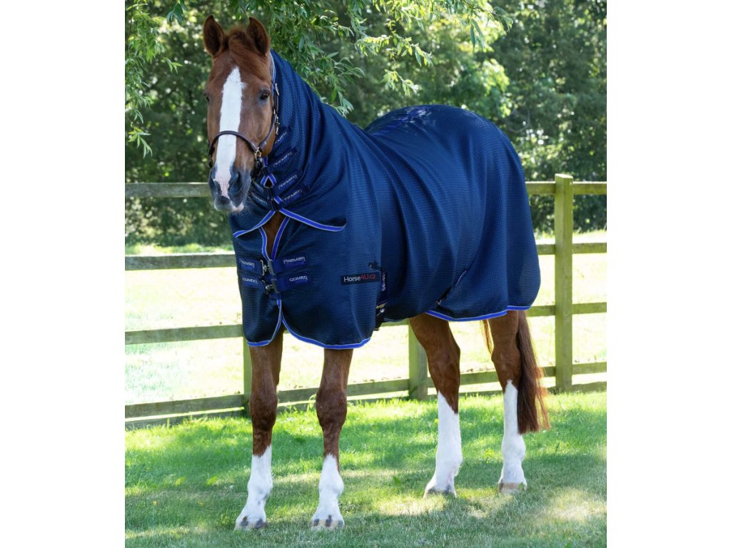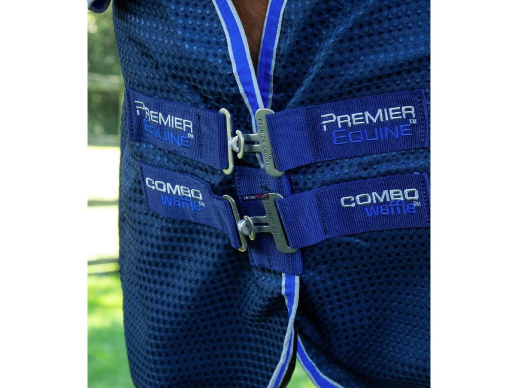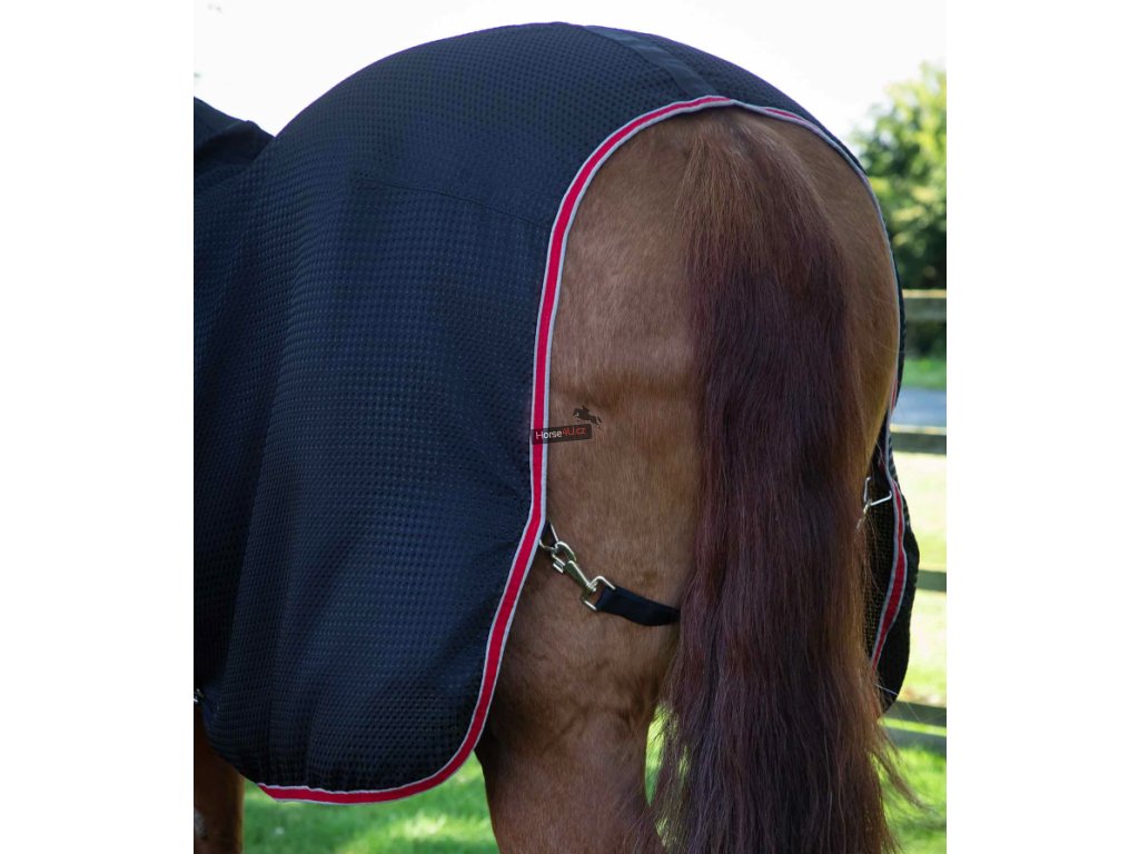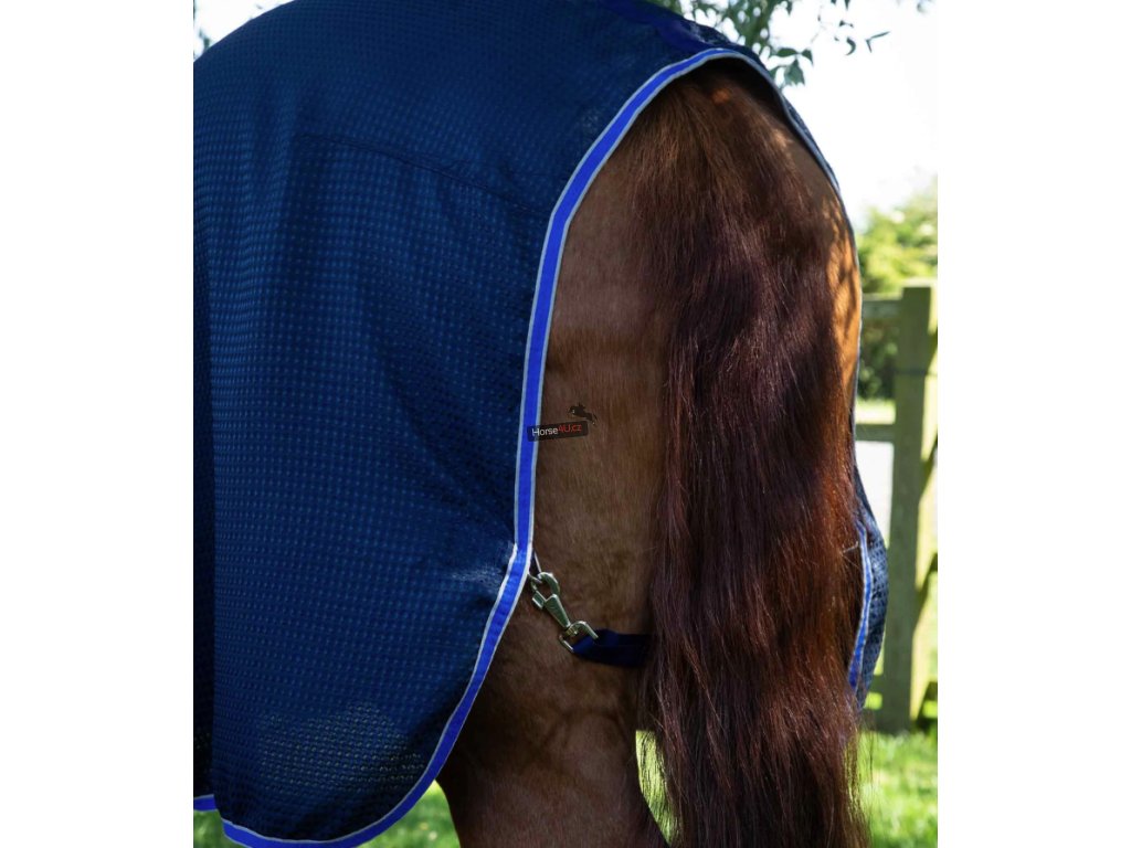 Chladicí deka Buster Waffle je kombinací moderních materiálů a klasického vzhledu a je ideální pro efektivní chlazení po celý rok. Vyrobena z lehké polyesterové tkaniny s vaflovou vazbou, rychle odvádí vlhkost od kůže a zároveň udržuje vašeho koně v pohodlí a bez prochladnutí. Integrovaný kryt krku poskytuje extra teplo a je z poloviny podšitý speciální antistatickou a antibakteriální tkaninou pro vynikající pohodlí a ochranu. Tvarované panely těla zajišťují těsné přiléhaní pro optimalizaci doby schnutí a jsou na hrudi zajištěny nerezovými T-rámy a úhledným dvojitým suchým zipem. Hladký povrch látky snižuje hromadění nečistot z podestýlky na vnější dece, takže je tato všestranná chladicí deka vhodná k použití jako deka do stáje nebo pro větší pohodlí při cestování.
