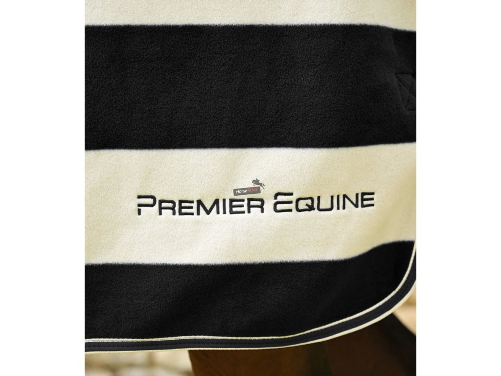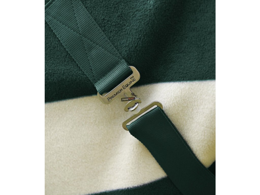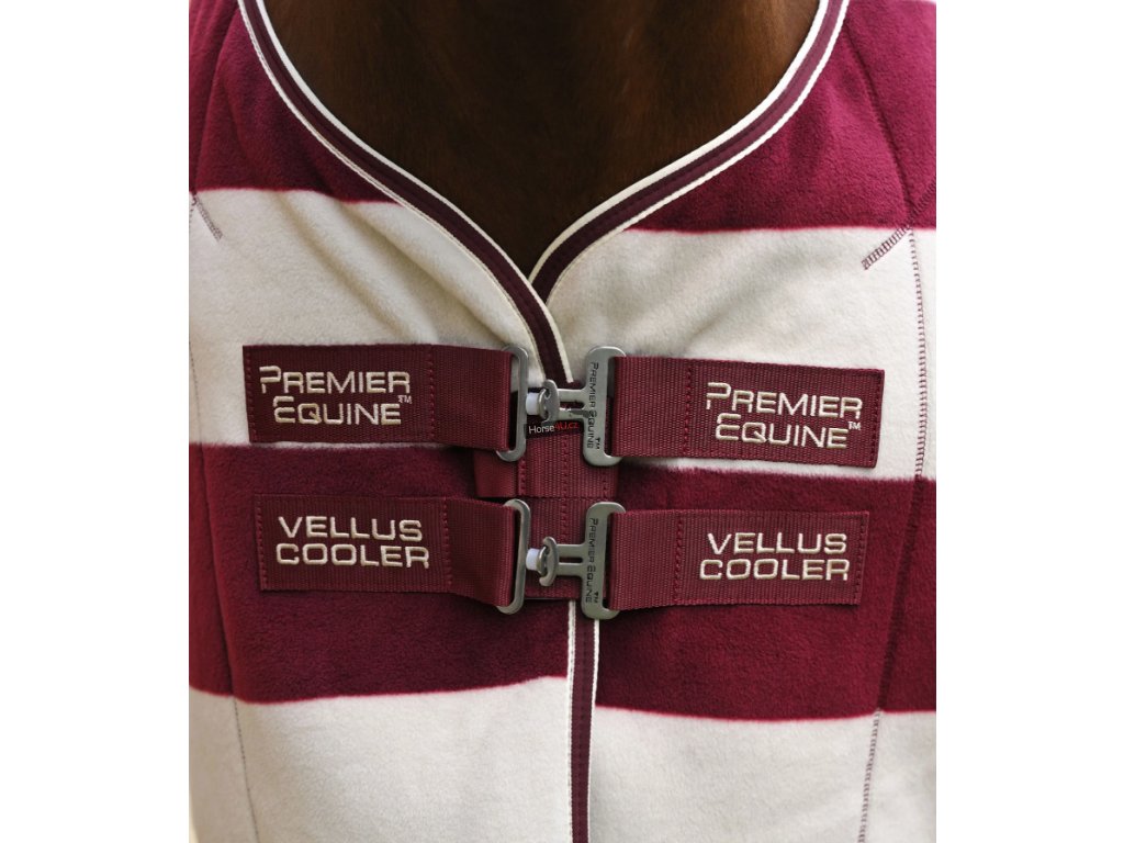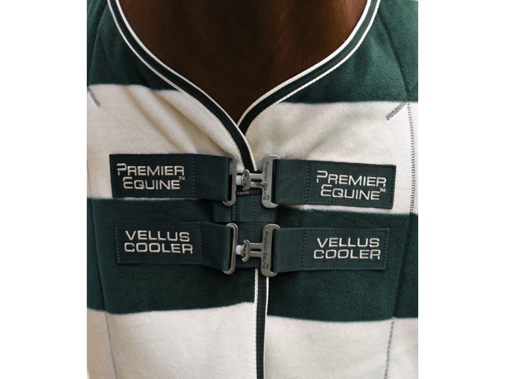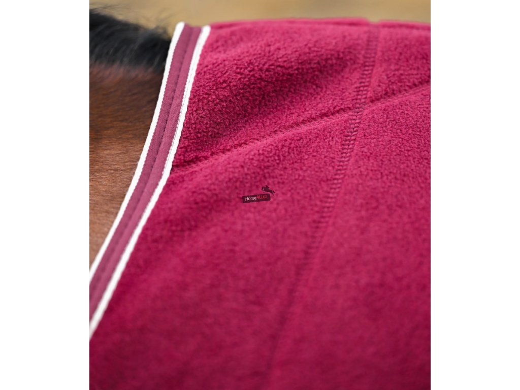 Odpocovací fleecová deka Vellus je vyrobena z prémiového 520g polar fleece s úpravou proti žmolkování a nabízí měkkou izolační vrstvu, která udrží vašeho koně v teple a pohodlí. Dvojité zapínání ve tvaru T na přední straně s bezpečným dvojitým uzamykáním zajišťuje pohodlné nošení, zatímco zesílené prošívání u výstřihu a v pase pomáhá udržovat tvar deky a zabraňuje nežádoucímu natahování. Měkké pohodlné lemování umocňuje celkový dojem a nastavitelný zadní popruh zajišťuje větší stabilitu. Tato deka, zakončená vytříbeným vyšívaným logem a prostorem pro personalizaci, v sobě spojuje praktickou funkčnost s elegantním a profesionálním vzhledem – což z ní činí nezbytný doplněk šatníku každého koně.