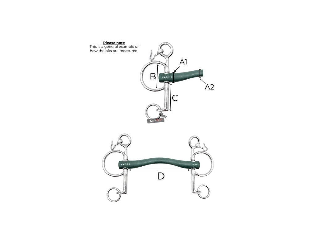 Bočnice Baby Pelham vytváří pocit rámu pro koně, kteří mají tendenci stát se nestabilními. Doporučujeme používat Baby pelham s delta rozdvojkou nebo dvojitými otěžemi, jednou ve velkém pevném kroužku a druhou v malém kroužku.