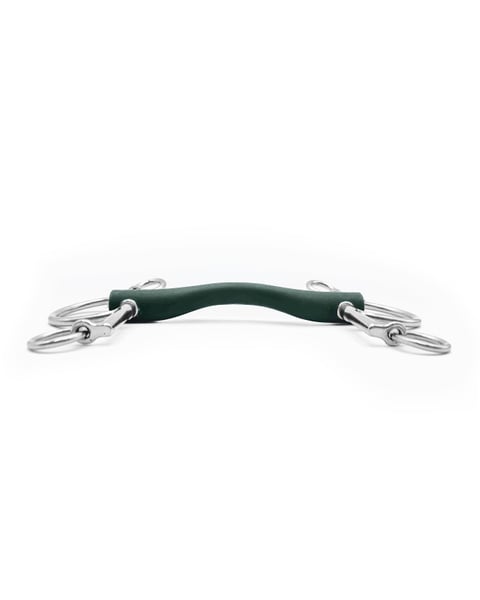Udidlo je vyrobeno z prémiového TPU (termoplastického polyuretanu) - kombinuje tak měkkost gumy s pevností a odolností potřebnou pro každodenní ježdění. TPU je známé svou výjimečnou flexibilitou, odolností a vlastnostmi bezpečnými pro koně, takže je ideální pro koně s citlivou tlamou a ty, kteří potřebují stabilnější kontakt.
