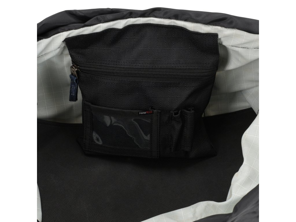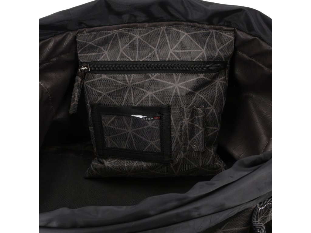 Velkokapacitní taška vyrobená z voděodolného materiálu. S velkým množstvím kapes, včetně kapsy na zip na vnější straně. Z vnitřní strany je další kapsa na zip. S madly a odnímatelným ramenním popruhem.