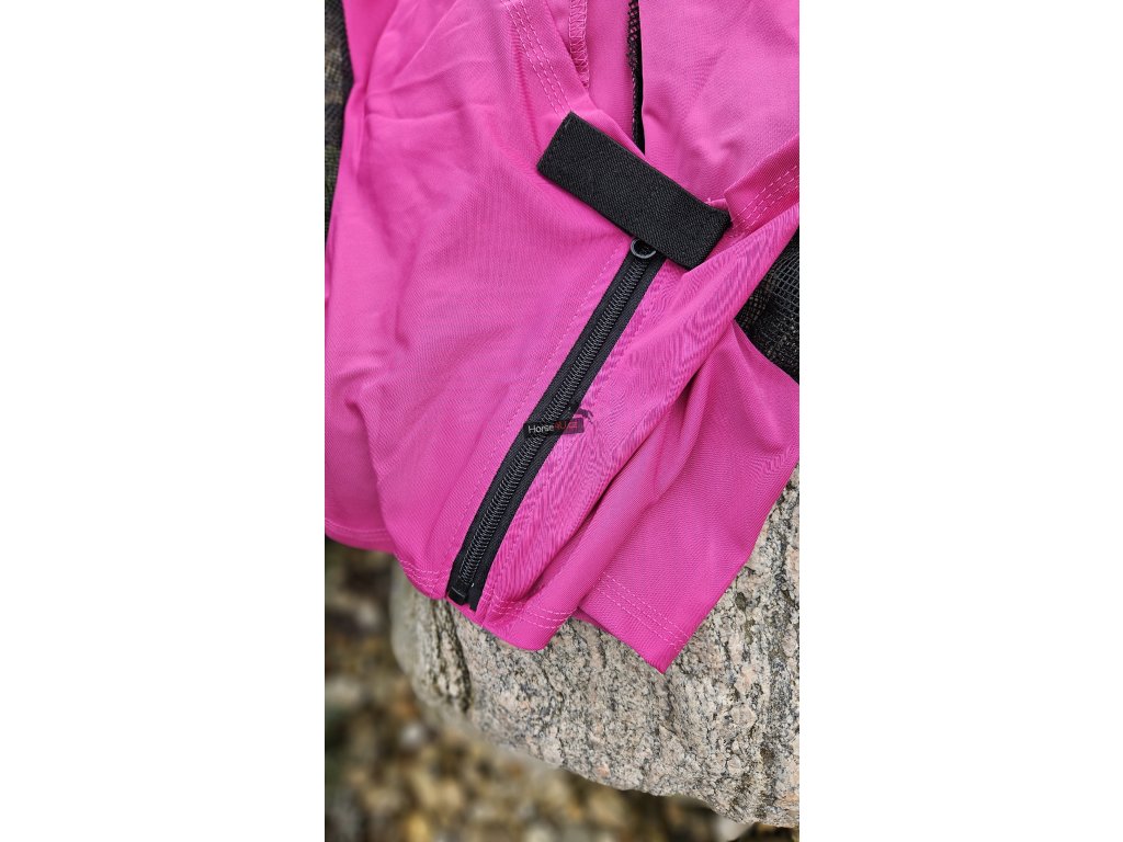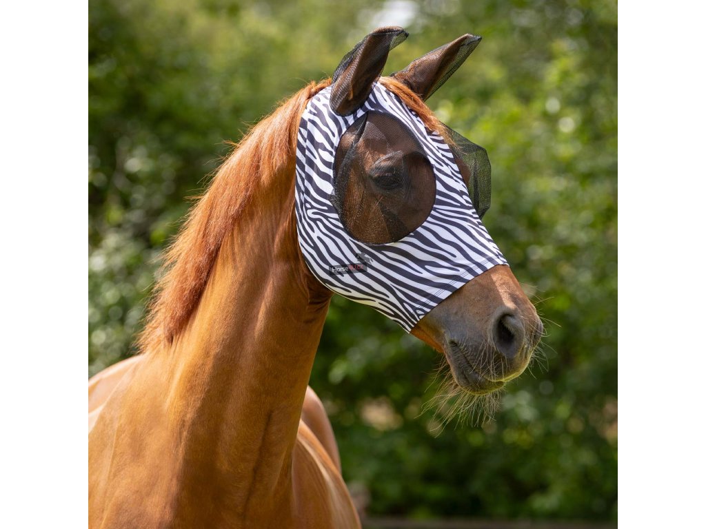 Maska je navržena tak, aby nošení masky proti muchám bylo pro koně co nejpohodlnější. Hladká a elastická látka působí jako druhá kůže. Síťka u uší a očí poskytuje jasný výhled a udržuje mouchy a hmyz v dostatečné vzdálenosti. Otvor na čupřinu. Maska se snadno zapíná pomocí zipu ve spodní části.