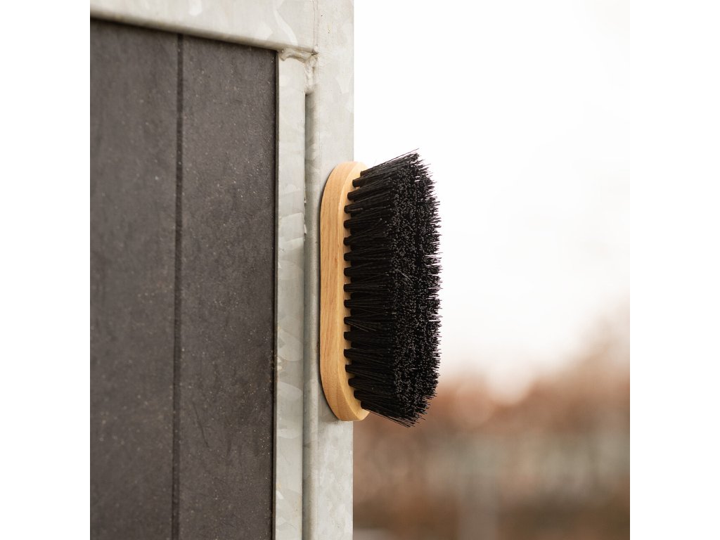 Tvrdý kartáč s pevnou dřevěnou rukojetí. Kartáč je vhodný pro uvolňování nečistot. Rukojeť má magnet, takže kartáč můžete snadno odložit k čemukoliv kovovému.