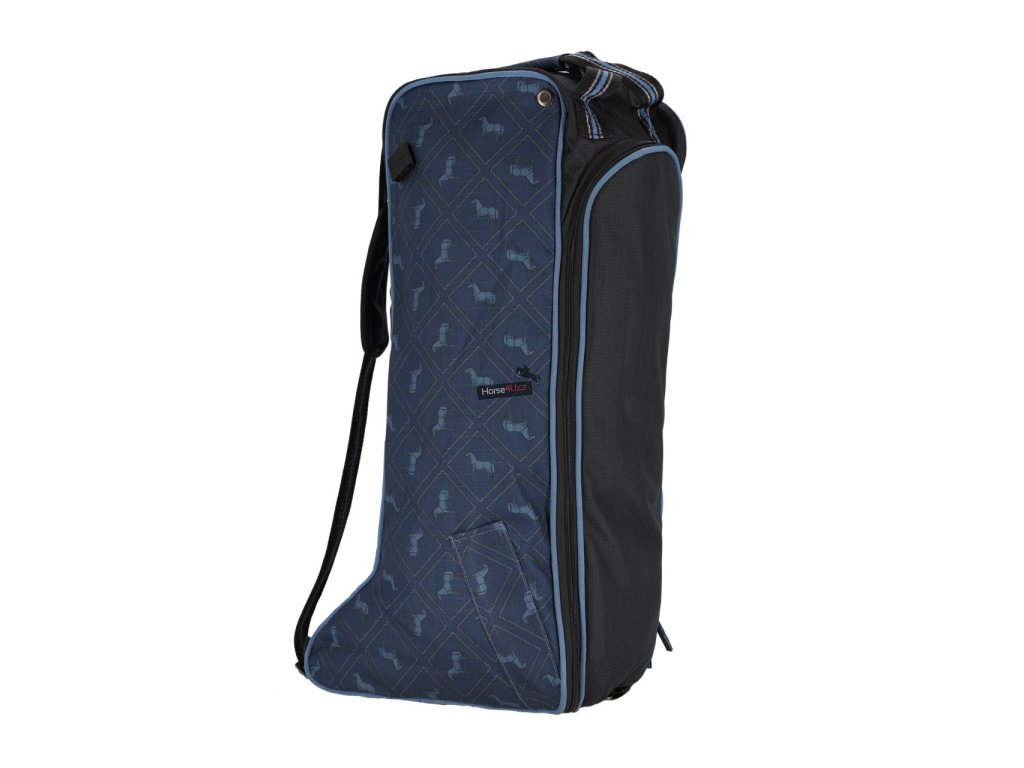 Luxusní obal na jezdecké boty z nepromokavého materiálu. Zadní část je opatřena síťovitou vložkou pro větrání vlhkosti. Odnímatelný ramenní popruh, kapsa na zip a slot pro jmenovku. Velikost 32 x 17 x 62 cm.