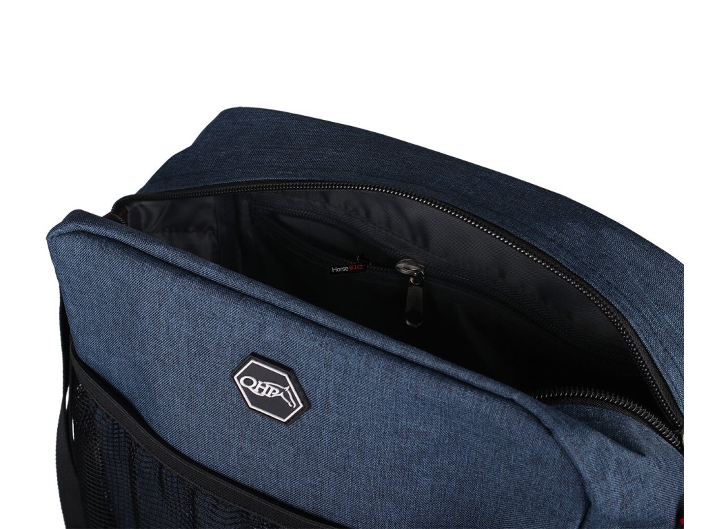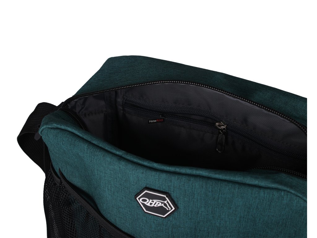 Praktická taška přes rameno pro jezdce nebo b-reitera. Taška má spoustu úložného prostoru, takže je ideální pro použití na soutěžích. Boky jsou vybaveny síťovými kapsami na věci, které by měly být na dosah.