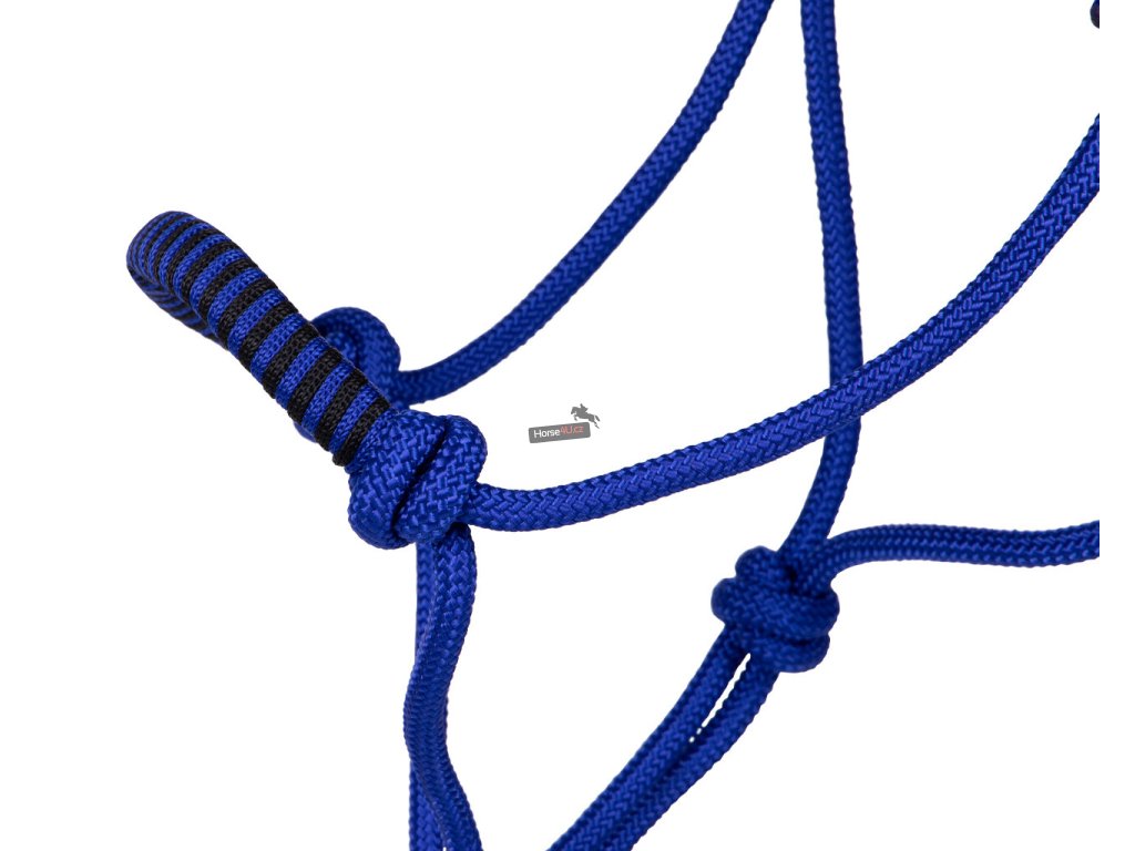 Provazová ohlávka s pleteným nánosníkem a zacvakávací přezkou. O9hlávku stačí nastavit pouze jednou a poté ji lze jednoduše zavřít pomocí klipu.