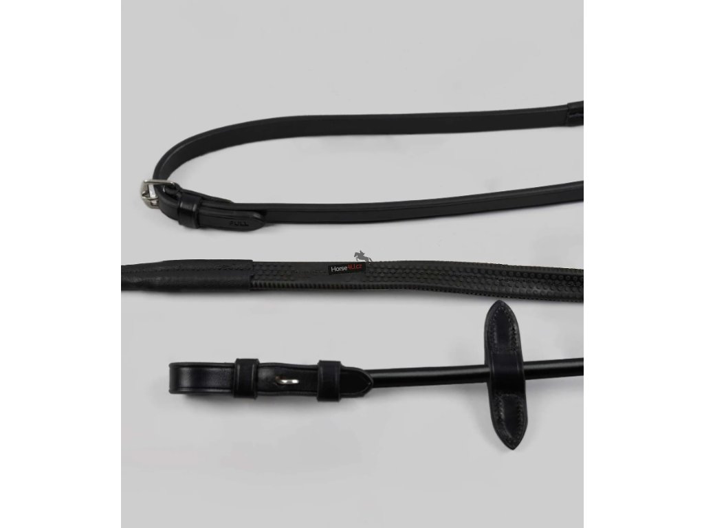 V kombinaci s anatomickou uzdečku Finetti je celkový vzhled elegantní a sofistikovaný, takže se perfektně hodí pro každého jezdce, který hledá výkon i styl. Tyto otěže jsou navrženy s gumovou úpravou která poskytuje vynikající ovladatelnost a bezpečné držení pro jezdce a přidává další vrstvu pohodlí a kontroly. Otěže jsou vybaveny odolným uchycením z nerezové oceli a zajišťují bezpečné a spolehlivé připevnění k udidlu.