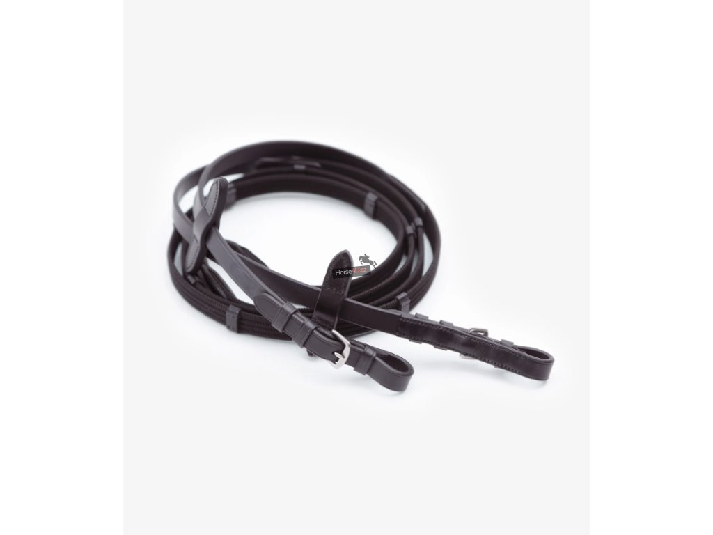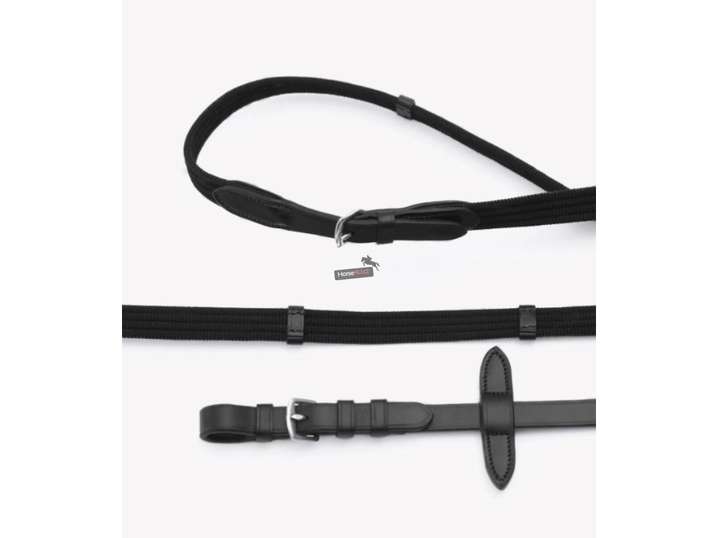 Kvalitní plátěné otěže Caloveto s koženými zarážkami. Včetně kožených martingalových zarážek. Tradiční zapínání na přezky, které se připevňují k udidlu koně. Tradiční otěže s moderním nádechem.