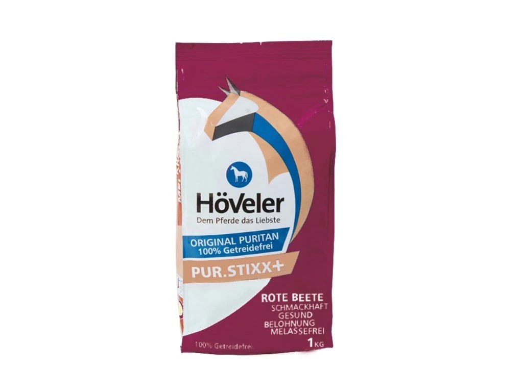 Höveler Pur.StiXX s červenou řepou jsou chutnou odměnou bez obilí, melasy a umělých přísad. Šetrně sušené trávy a byliny obsahují řadu přírodních životně důležitých látek a umožňují tak přirozené krmení. Recepturu doplňují vysoce kvalitní suroviny jako lněné semínko, jablečné výlisky, čekanka, ostropestřec a samozřejmě červená řepa.