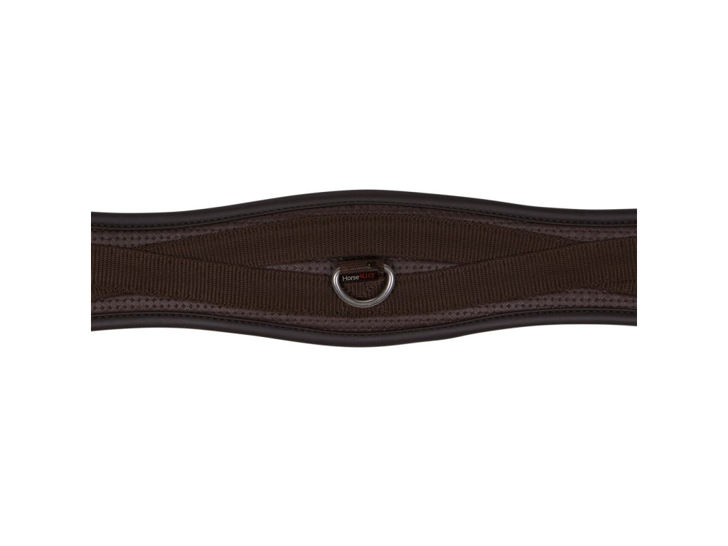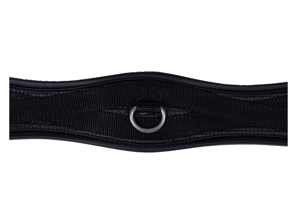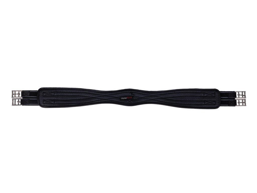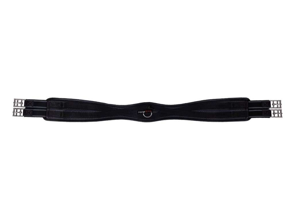 Anatomicky tvarovaný univerzální podbřišník z pevného materiálu. Vhodný i pro citlivé koně. Podbřišník má elastické konce a má několik kroužků pro připevnění pomocných otěží.