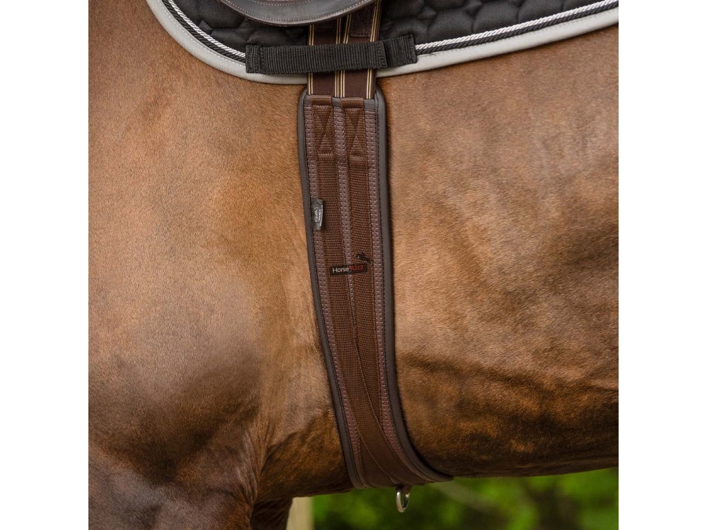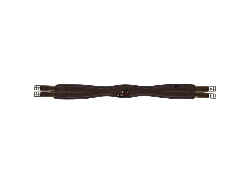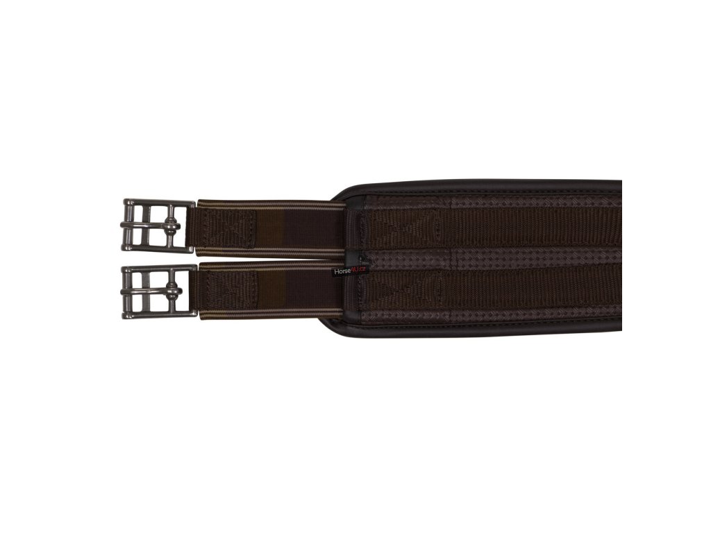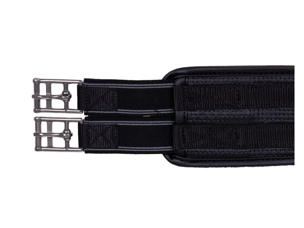 Anatomicky tvarovaný univerzální podbřišník z pevného materiálu. Vhodný i pro citlivé koně. Podbřišník má elastické konce a má několik kroužků pro připevnění pomocných otěží.