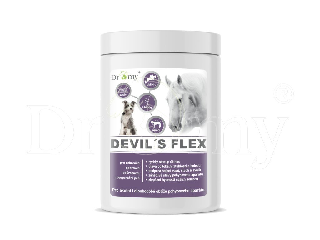 Devil’s Flex je určený pro všechny koně, jejichž klouby a vazy čelí enormní zátěži, pro jedince s diagnostikovanými degenerativními změnami pohybového aparátu, a zároveň pro seniory, kteří jsou těmito změnami postiženi nejvíce. Stejně tak tvoří nepostradatelnou součást poúrazové a pooperační péče, kdy napomáhá rychlejší regeneraci a návratu do kondice.