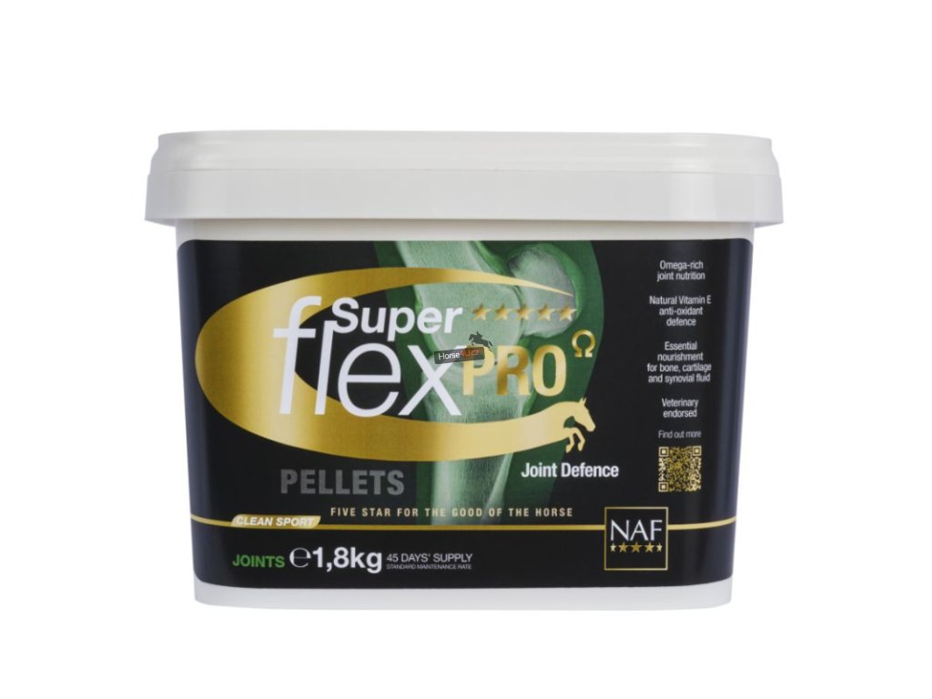 S peletami Superflex PRO Omega zahajuje NAF novou éru v podpoře koňských kloubů. Tento pětihvězdičkový doplněk je speciálně navržen tak, aby splňoval specifické potřeby sportovních koní a je dalším vývojem stávajícího prášku NAF Superflex PRO. Tato silná a inovativní kombinace obsahuje inovativní nové složky, které byly pečlivě testovány na sportovních koních a prokázaly svou účinnost.