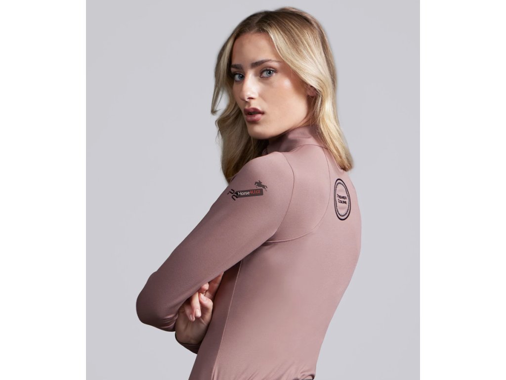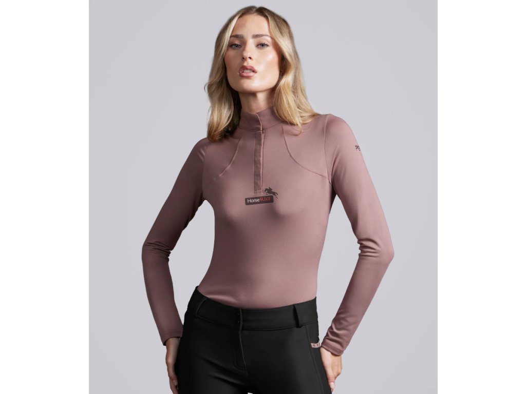 Top Catori je stylový a v lichotivém odstínu starorůžové a disponuje funkčním 3/4 zipem pro nastavitelné proudění vzduchu a elegantním sportovním vzhledem. Decentní logo Catori dodává rafinovaný, moderní nádech, díky čemuž je tento top vhodný jak pro běžné nošení, tak pro ježdění. Ať už se chystáte do stájí, na docházku nebo na pochůzky, tento všestranný kousek kombinuje technický výkon s jezdeckou elegancí, což je nezbytnost v šatníku každého jezdce.