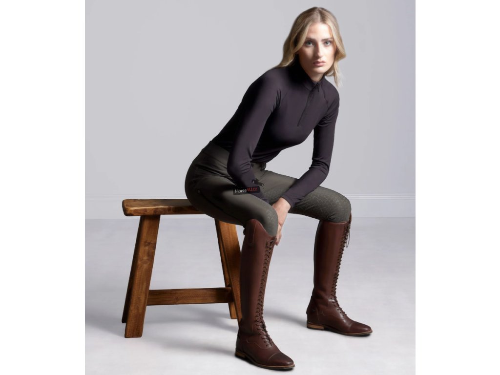 Dámské jezdecké triko Elixir s dlouhým rukávem v černé barvě je všestranný nezbytný kousek, navržený pro výkon, pohodlí a styl. Tento top, který je součástí prémiové řady Elixir, je vyroben z pokročilé tkaniny PEACH-X, lehkého, prodyšného materiálu se 4cestným strečem, který nabízí padnoucí vzhled a naprostou volnost pohybu. Tato technická vrstva, složená z 90 % polyesteru a 10 % elastanu, je z vnitřní strany česaná pro měkký pocit na pokožce, zatímco její rychleschnoucí vlastnosti vás udrží v chladu a pohodlí během intenzivního tréninku nebo dlouhých dnů ve stáji. Top Elixir je ideální pro ježdění i každodenní nošení a nabízí elegantní styl a funkční výkon v sedle i mimo něj.
