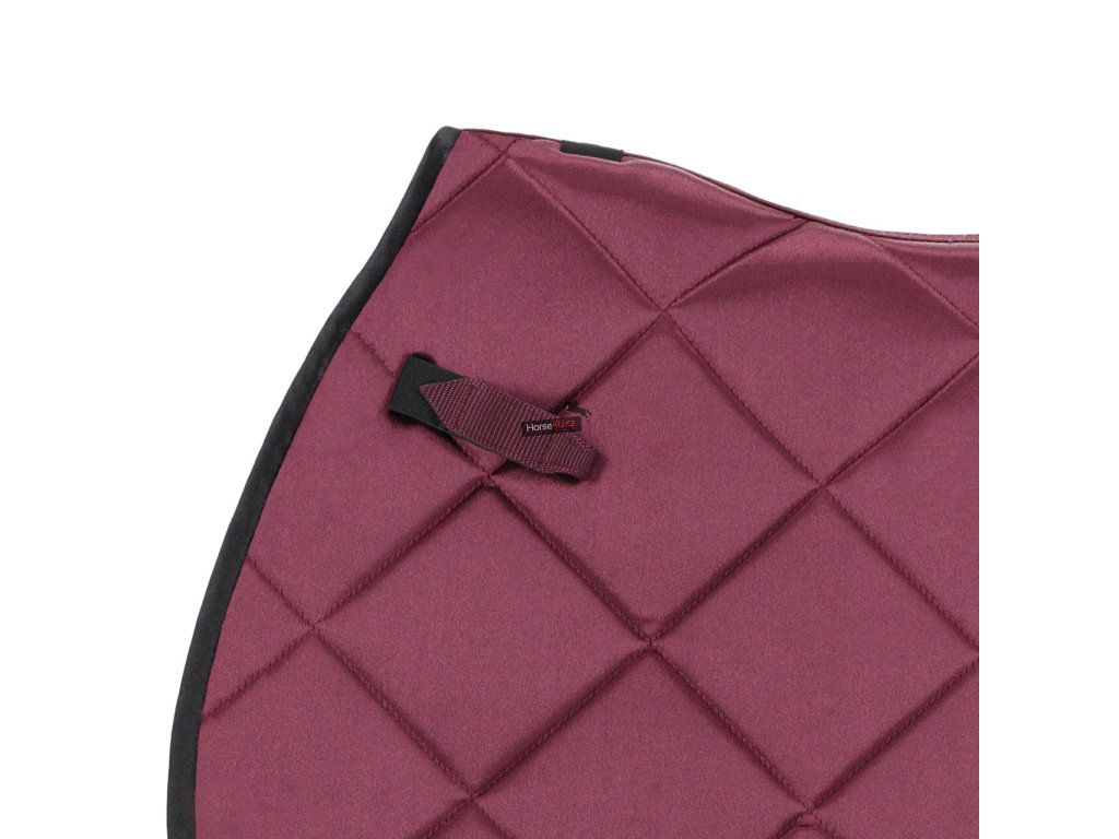 Elegantní vínová podsedlová dečka se saténovým vzhledem a prošíváním. Vybavena třpytivým lemováním, ozdobnými šňůrkami a Q-odznáčkem. Anatomický tvar zajišťuje optimální padnutí, zatímco síťovaná podšívka účinně absorbuje pot.