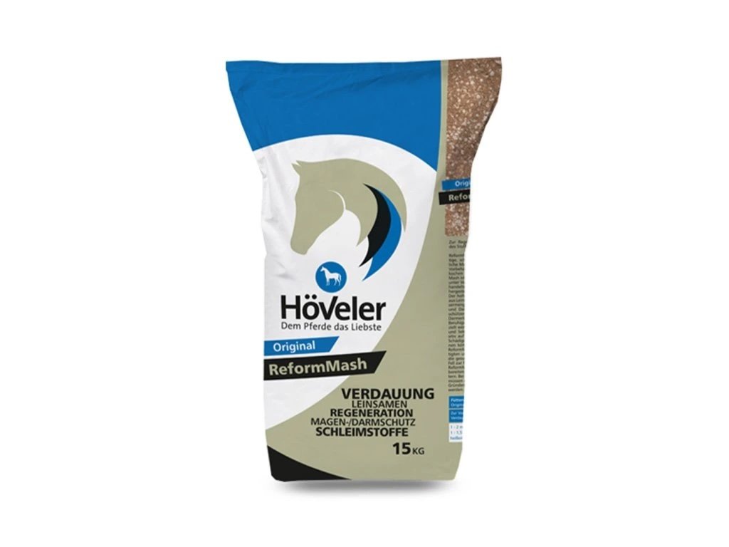 Höveler ReformMash je chutný a jednoduše stravitelný mash pro koně, k jehož přípravě není zapotřebí složitého předvaření. Mash obsahuje mnoho slizovitých látek z lněných semínek, která absorbují velké množství vody a pokryjí žaludeční a střevní stěny hlenem, který funguje jako ochranný film. Vysoký obsah vitamínu E a selenu mají pozitivní vliv na buněčný metabolismus. Také poškození membrán buněk je zredukováno. ReformMash obsahuje mnoho nasycených a nenasycených mastných kyselin, které mají příznivý vliv na kvalitu srsti a kůže.