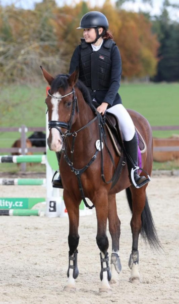 Mám šestiletou klisnu českého teplokrevníka, která se jmenuje Ave Maria. Marušku jsme našli úplně náhodou – hledali jsme mladého koně do sportu, jezdili jsme po celé republice, ale pořád nic. Pak nám přišla právě její fotka, a já jsem se do ní úplně zamilovala. Řekla jsem si, že tu chci. Jela jsem si ji třikrát vyzkoušet a pak jsem si ji odvezla domů. Je hodně temperamentní, má svůj názor, sem tam se něčeho lekne a jsou dny, kdy jí mám plné ruce. Takže jo… občas se chová jako typická kobyla.😄Ale zákeřná není, takže jí všechny vylomeniny zase hned odpouštím.