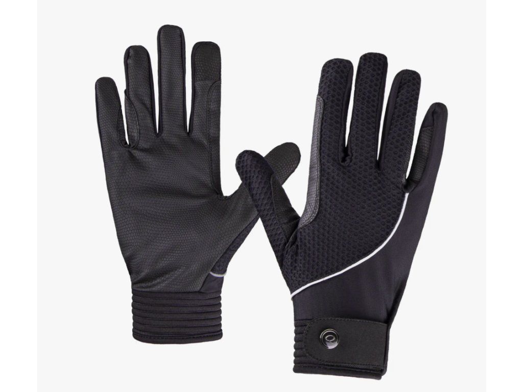Jezdecké rukavice ideální na léto. Síťovna na hřbetu ruky je nejen příjemná a vzdušná, ale také propouští UV paprsky. Na ukazováčku je speciální látka, takže můžete používat svůj mobil, aniž byste museli rukavici sundat. Potisk na zapínání "Equestrians Sports".