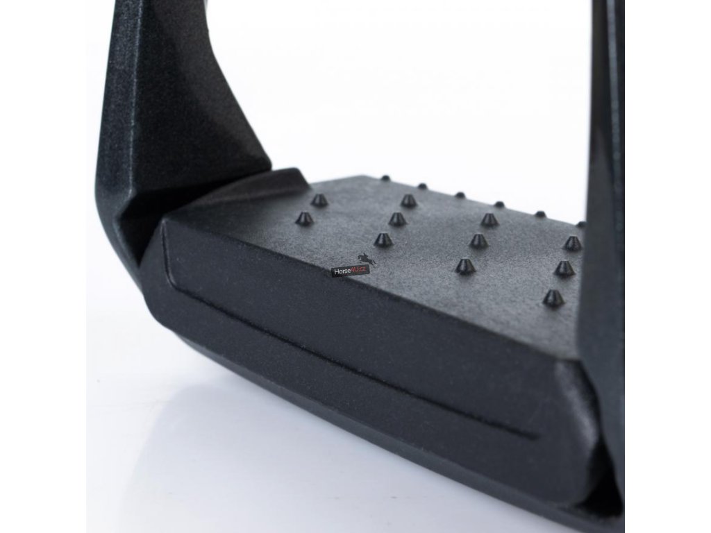 Nášlapná plocha je vyrobena z houževnatého kompozitu, který je neobyčejně odolný vůči oděrům. Výstupky ve tvaru ostnů navíc zvyšují přilnavost podrážky k nášlapné ploše, čímž zamezují vyklouznutí nohy z třmene.