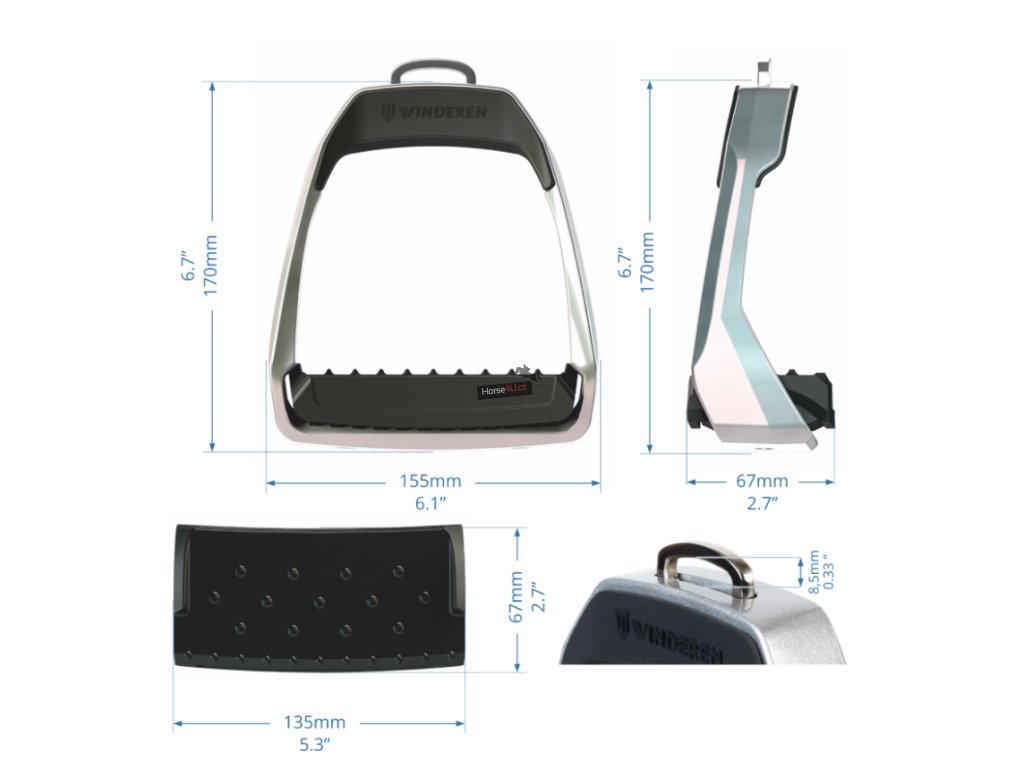 Inovativní třmeny Winderen Knee Protect Solution se systémem absorbérů kinetické energie jsou navrženy tak, abych výrazně zmenšili zatížení kolenních kloubů a kotníků během jízdy, a to zejména během skoků přes překážky. Současně třmeny Winderen Knee Protect Solution nabízí výjimečně jistou a neměnnou oporu chodidla ve třmeni, což napomáhá pevnému, jistému a komfortnímu přiložení lýtka.